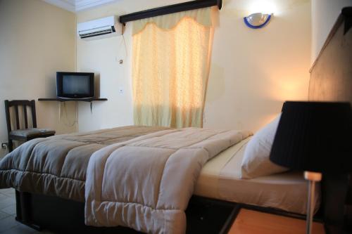 Featuring a garden a terrace and a shared lounge le Baobab is located in Bamako and is 7 km from National Museum of Bamako. The 2-star hotel has air-conditioned rooms with a private bathroom and free WiFi. Guests can enjoy a drink at the bar or a meal in the restaurant.All rooms in the hotel are equipped with a TV. All guest rooms include a wardrobe.Staff at reception can lend a hand around the clock with guidance on the area.Institut Nationale Geographique is a 13-minute walk from le Baobab.