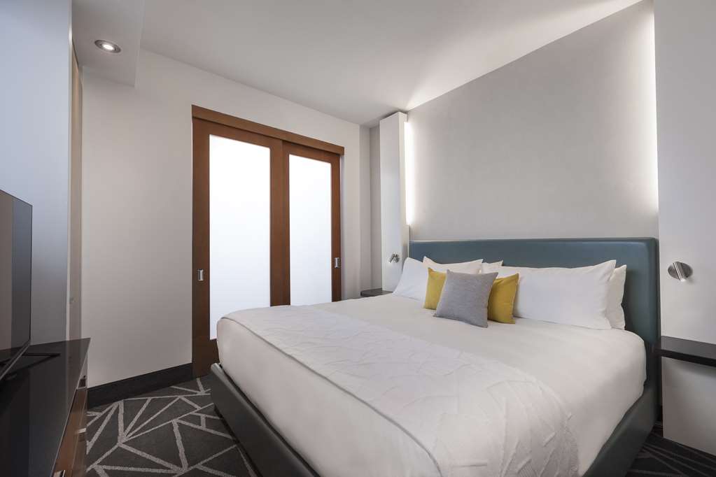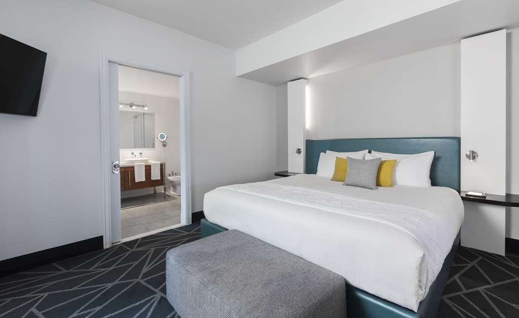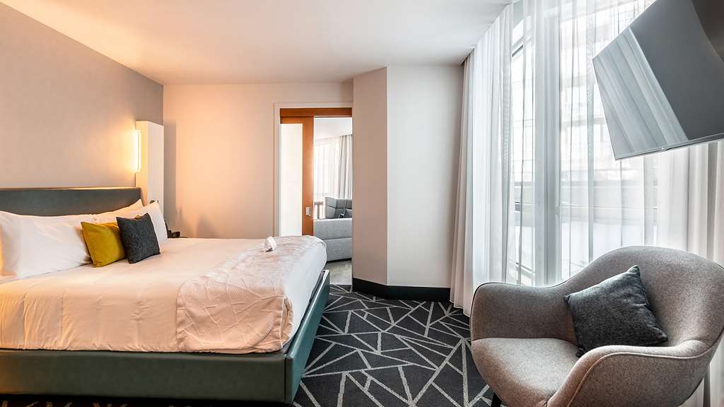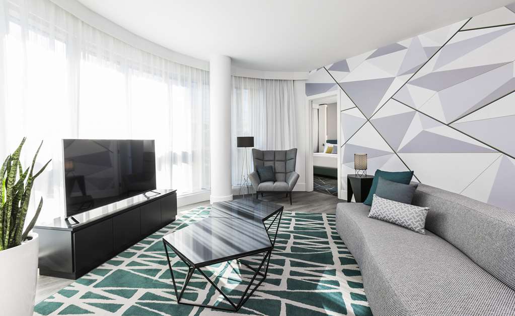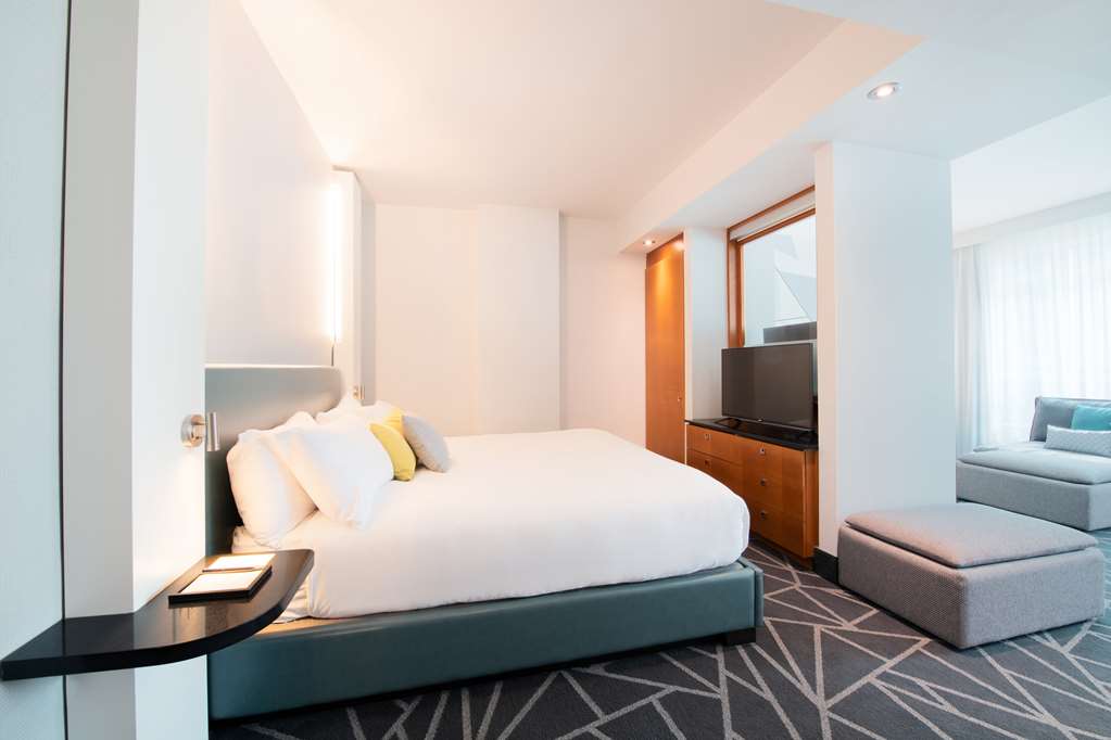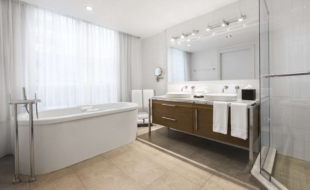This all-suite hotel is located in the heart of Montreal's business district, on the fashionable Rue de la Montagne and Rene Levesque Boulevard. It is right next to links to the public transport network and just steps from the best shopping and dining and the vibrant Montreal nightlife. The Bell Center, home of Les Canadiens de Montreal and temple of international entertainment, is just across the street and it is 500 m to Old Montreal, the city's historic area and 700 m to the Montreal Museum of Fine Arts. Jean Drapeau Beach is 3.7 km away and it is 7.3 km to the Olympic Stadium and 8.6 km to the La Ronde amusement park.Built in 2008, this charming all-suite city design hotel rises up as a gleaming tower on Montreal's Rue de la Montagne and comprises a total of 131 accommodation units. It is ideal for business travellers, conferences and holidaymakers alike. Facilities on offer to guests at this air-conditioned establishment include a lobby area with a 24-hour reception and check-out service, a hotel safe, a currency exchange facility and a cloakroom. There is a café, a bar, a pub, a disco and a restaurant as well as conference facilities and WLAN Internet access. Guests can also take advantage of the room and laundry services and there is a car park and covered garage parking for those arriving by car.The luxury suites are among the city's most spacious. They are appointed in comfortable and contemporary style for today's discerning travellers. All come with a private bathroom with a shower/bathtub and a hairdryer and offer a king-size bed. They are equipped with a direct dial telephone, satellite/ cable TV, a radio, Internet access and a safe. There is a kitchen with a minibar/fridge, a microwave, tea and coffee making facilities and a washing machine. Furthermore, an ironing set, air conditioning and heating are provided in all accommodation as standard and all units feature either a balcony or a terrace.