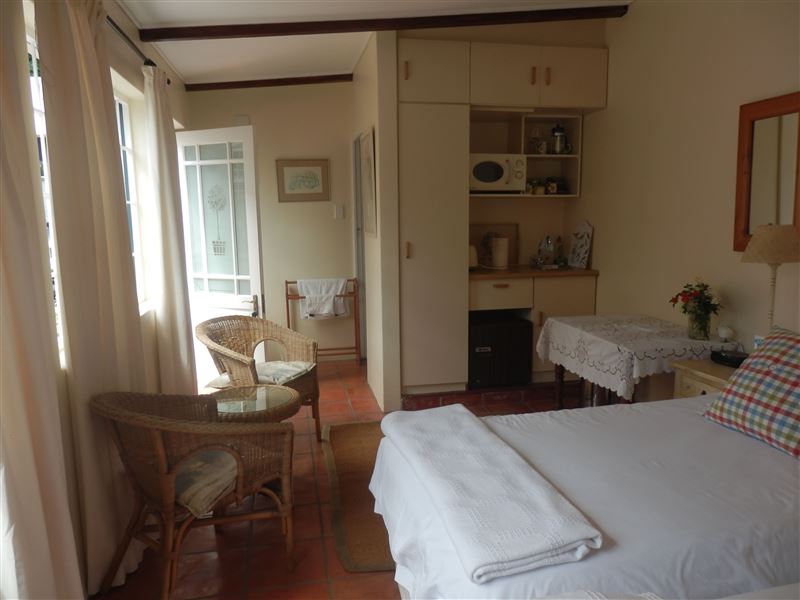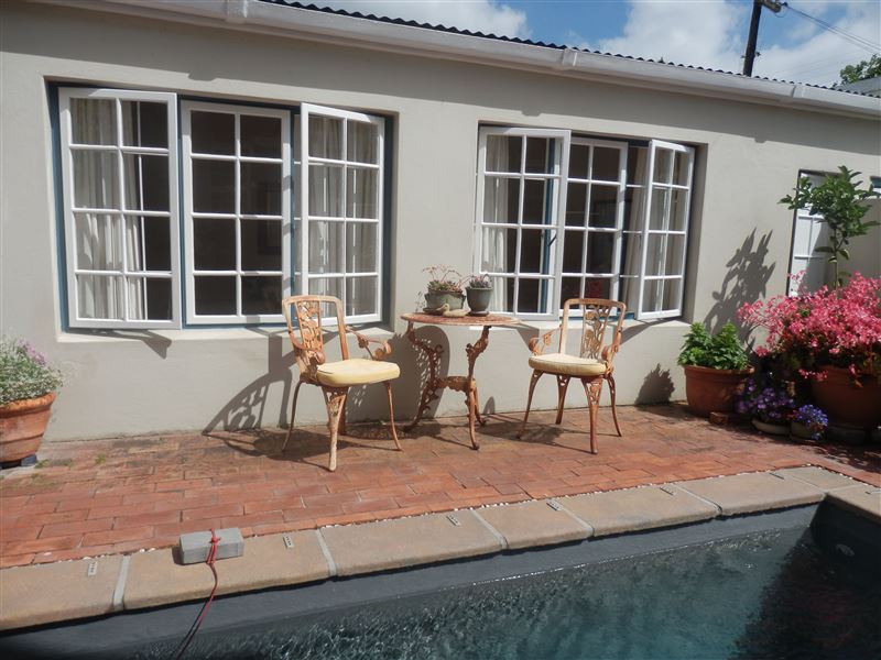 Imagine yourself walking along the tree-lined streets of Rondebosch. At the idyllic Lemon Thyme Cottage this is a reality for two guests in a cosy area.The quaint cottage sleeps two guests in two twin beds with percale linen. The en-suite bathroom is fitted with a shower. A kitchenette area offers a microwave, toaster and bar fridge. Tea and coffee facilities can also be enjoyed. Further in-room amenities available include a fan, heater, hair dryer, Wi-Fi, radio and DStv. The patio looks out over a sparkling swimming pool with outdoor furniture. At Lemo