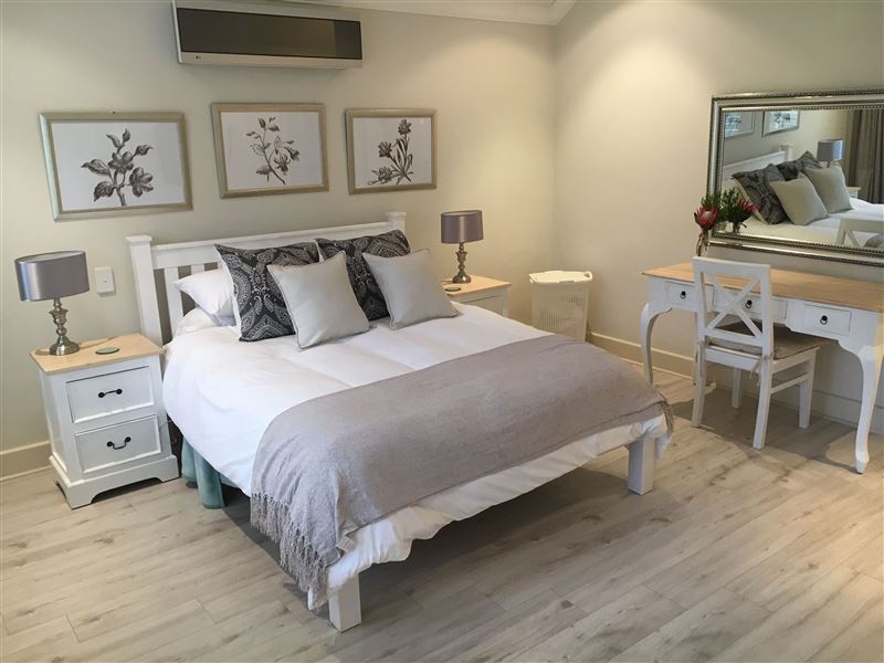 The main bedroom features a balcony, walk-in closet with plenty of cupboard space and an ensuite bathroom containing a Victorian bath, shower, toilet and twin basins. This bedroom is perfect for couples. The second bedroom features a balcony and ensuite bathroom containing a Victorian bath, shower, toilet and single basin. The third bedroom features an ensuite bathroom containing a shower, toilet and single basin. Each of the three air-conditioned, ensuite bedrooms contain queen-size beds with side tables and each has a dressing table containing hairdryers with access to a plug point. Leopard Tree Lodge is child-friendly and offers FAMILY amenities such as a baby crib, baby bathtub, a high chair, a changing table, fireplace guards and babysitting services (additional charge). Proximity to nearby hotspots: - Supermarket including Woolworths and Pick n' Pay (0.1 kilometres walk) - World-renowned restaurants (0.1 kilometres) - Wine Tastings / Farms (0.2 kilometres) - Filling Station (0.2 kilometres walk) - Franschhoek Information Centre (0.3 kilometres)- Local pubs (0.3 kilometres walk) - The Franschhoek Monument (1 kilometre)