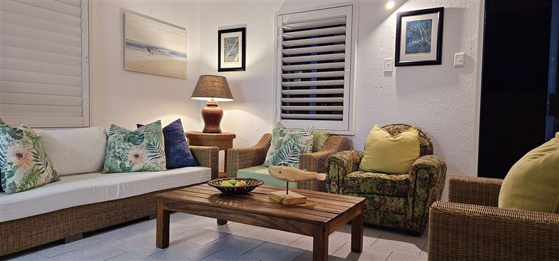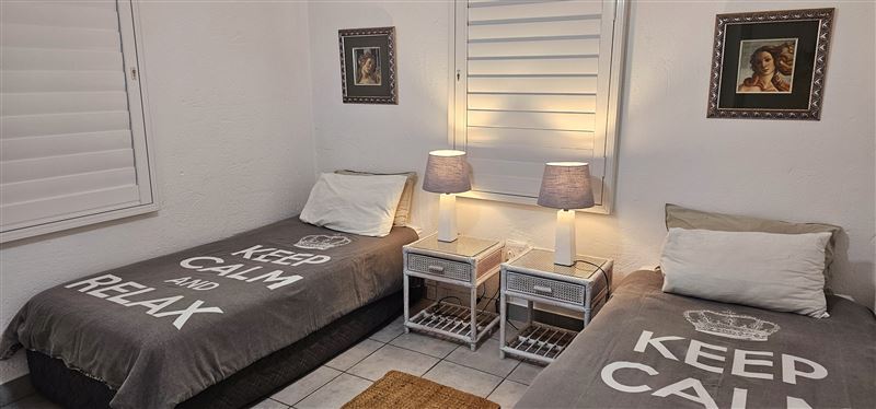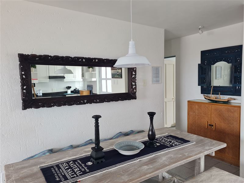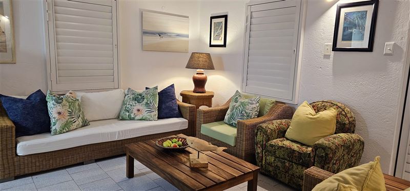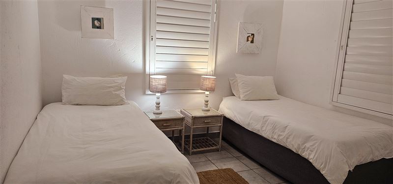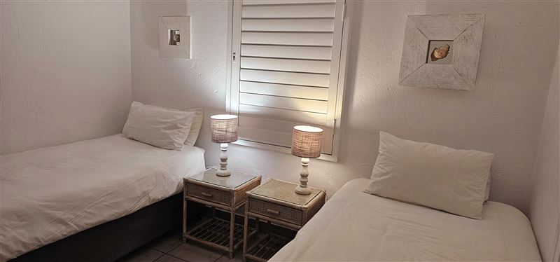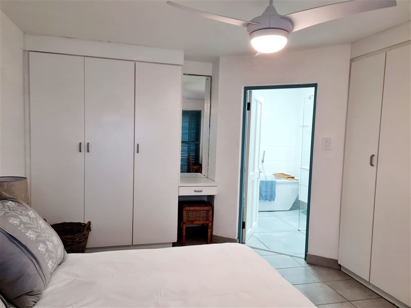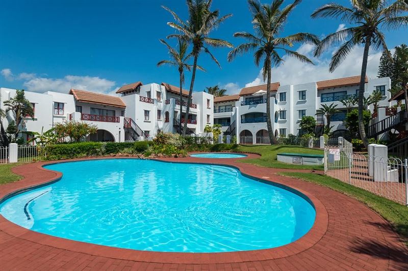 This spacious and neat three-bedroom apartment is situated on the first floor in a very popular complex on the Ballito beachfront, with a ground floor entrance. This unit has magnificent beach and sea views from the spacious balcony, lounge and main bedroom.Le Paradis 18 consists of three bedrooms, with a queen bed in the main bedroom and an en-suite bathroom with a corner bath. There are two single beds in the second and third bedrooms and a second bathroom with a bath and shower that caters for the second and third bedrooms.The lounge and dining room opens onto a balcony with a table, chairs