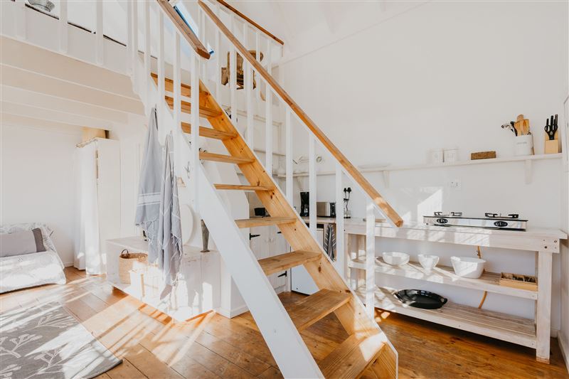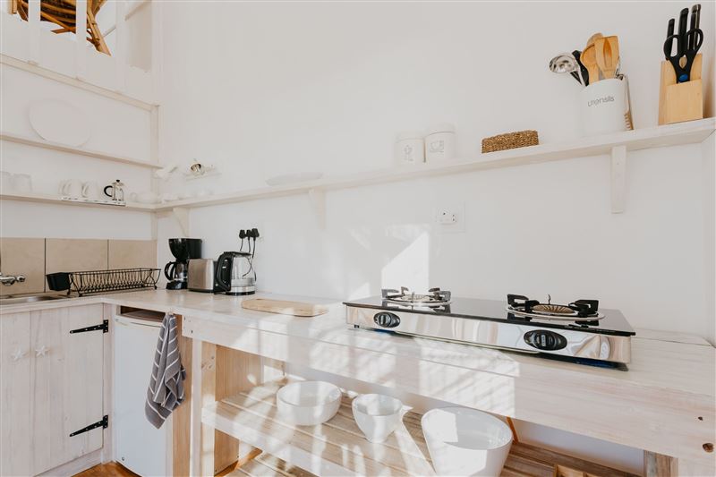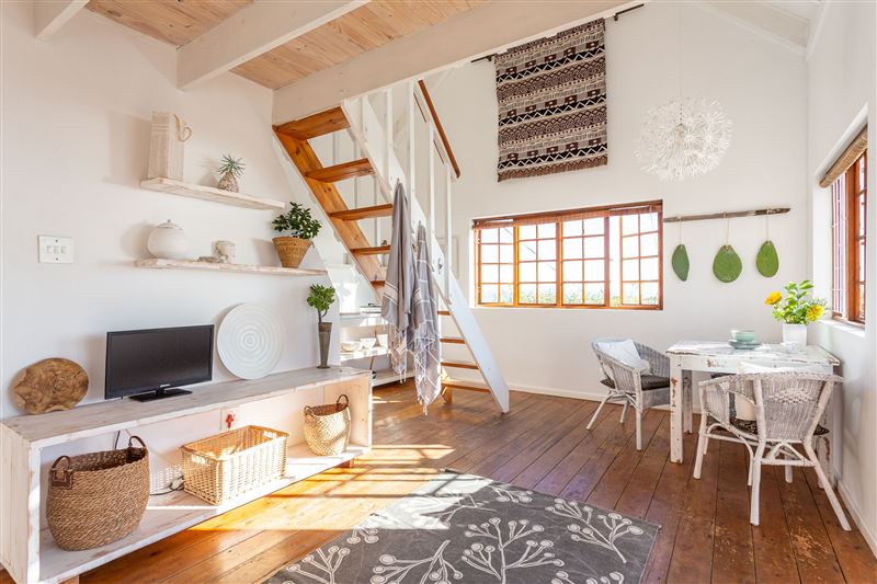 Lighthouse Cottage is a spacious, open-plan cottage located in Kommetjie, Cape Town. In peak season, Kommetjie remains a prime destination for relaxing and enjoying, surrounded by a safe environment filled with rich outdoor life.The cottage captures an elevated sea view with an idyllic atmosphere, and is furnished with a modern African touch. Our outdoor veranda boasts magnificent sea views, while the bedroom is lined with sky windows which makes the room very sunny. The lounge and dining room includes a sleeper couch, TV and CD player, and the open-plan kitchen is fully equipped f