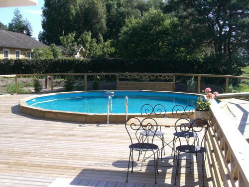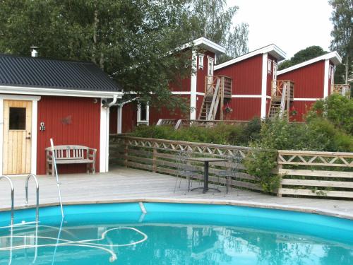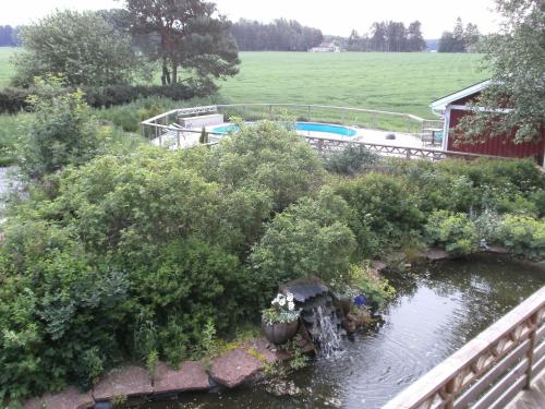 These 2-storey rooms 5 km from Nossebro town centre are located in the small village of Essunga Kyrkby. The property features free Wi-Fi an outdoor pool along with quiet green surroundings.A long goldfish pond runs alongside Lilla Badhotellet. Each room offers a furnished balcony flat-screen cable TV and small kitchenette with a fridge microwave and tea/coffee facilities.On-site activities include a bookable sauna bicycle rental and hiking trails. The closest grocery store is just 1 km away while central Gothenburg is 50 minutes' drive from the property. Skara Sommarland Amusement Park Alingsås and Lidköping are all 40 minutes away by car.