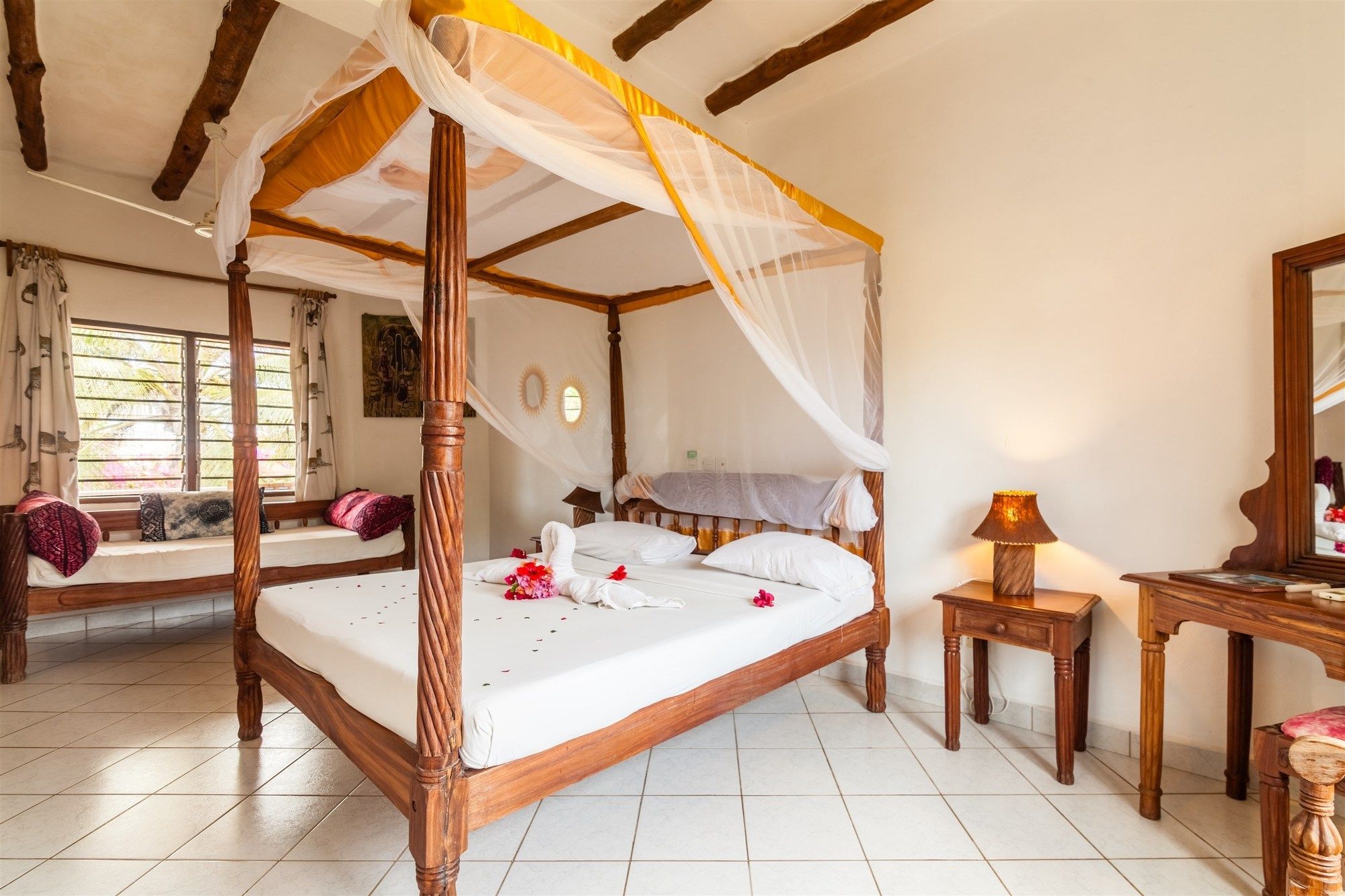 Located in Watamu, Lily Palm Resort is by the ocean and minutes from Gede Ruins and Watamu Marine National Park. This 4-star hotel is within close proximity of Bio-Ken Snake Farm and Watamu Beach.Rooms Make yourself at home in one of the 74 guestrooms featuring refrigerators. Rooms have private furnished balconies or patios. Bathrooms have showers and hair dryers. Conveniences include safes and desks, and housekeeping is provided daily.Amenities Pamper yourself with onsite massages or take in the view from a terrace and a garden. Additional features at this hotel include complimentary wireless Internet access, babysitting/childcare (surcharge), and gift shops/newsstands.Dining All-inclusive rates are available at this hotel. Meals and beverages at onsite dining establishments are included in all-inclusive rates. Charges may be applied for dining at some restaurants, special dinners and dishes, some beverages, and other amenities. Grab a bite at one of the hotel's 2 restaurants, or stay in and take advantage of room service (during limited hours). Mingle with other guests at a complimentary reception, held on select days. Relax with a refreshing drink from a beach bar or one of the 2 poolside bars. A complimentary buffet breakfast is served daily. Business, Other Amenities Featured amenities include a 24-hour front desk and luggage storage.