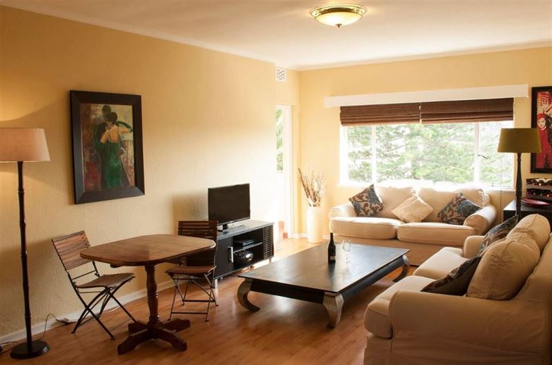 This central apartment has all the needed amenities and can comfortably sleep four guests. Situated in Kenilworth, the apartment is a great point from which to explore the Mother City. Lisanore sleeps four guests in two bedrooms. One bedroom has a queen bed and the other bedroom has a double bed. There is a beautiful bathroom with a shower over the bath. There is a spacious open-plan lounge and dining area with a balcony. The lounge is comfortably furnished with full DStv and a pre-paid Wi-Fi dongle. The kitchen is fully equipped with oven and hob, microwave, washing machine,