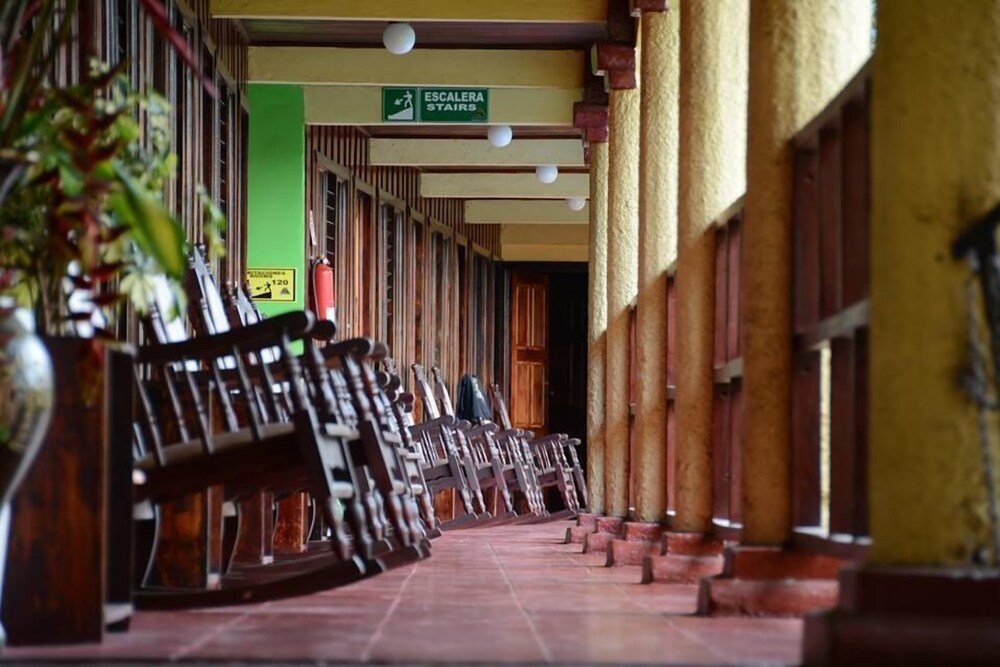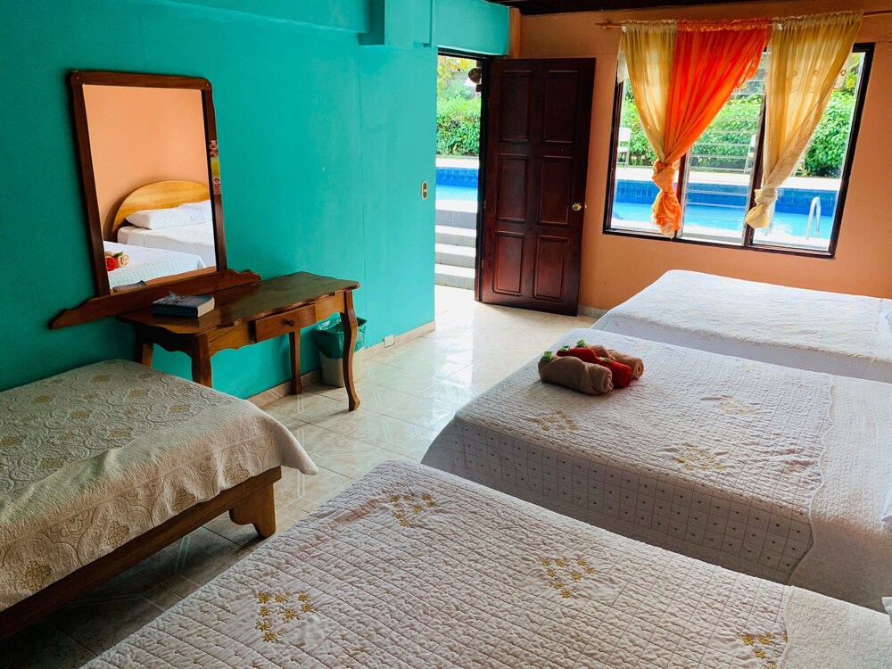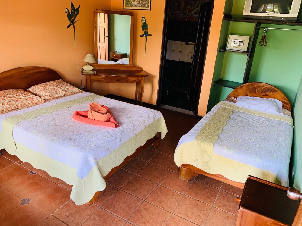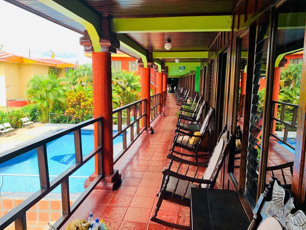 This small hotel is quietly situated in the pleasant town of La Fortuna, in the north of Costa Rica. This hotel is the ideal starting point for excursions in the idyllic surrounding area. In the immediate vicinity, guests will find the Fortuna River waterfall, the Lake Arenal as well as the Tabacon Resort and the Baldi thermal baths. The main attraction of this region is the cone formed Arenal volcano with its national park and the Venado caves. There are also plenty of other attractions and activities, such as hiking and bird watching, which are within easy reach of the hotel. La Fortuna Catholic Church is located around 200 m away and is definitely worth a visit.This hotel was completely renovated in the year 2005 and comprises 20 rooms spread over a total of 2 floors. The hotel offers its guests a foyer with a 24-hour reception desk and a currency exchange desk. Reception personal are happy to help with any questions about trips in the surrounding area. Dining options include a snug restaurant, and at the bar guests are able to enjoy tasty drinks in a cosy atmosphere of the comfortable lounge. Further facilities include a conference room and a thrilling casino. Further facilities include medical assistance. Those arriving by car are able to park in the secure car park.The comfortable rooms include an en suite bathroom with hairdryer, a direct dial telephone, satellite/ cable TV and centrally regulated air conditioning. From the balcony or terrace, guests are offered a stunning view of the wonderful grounds and Arenal volcano. In addition rooms are fitted with a minibar as standard.