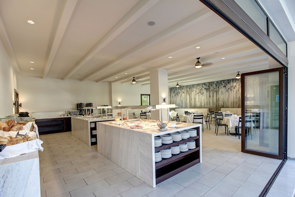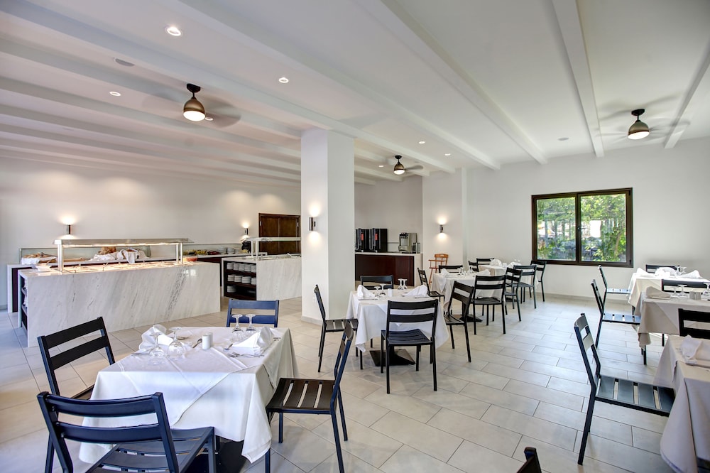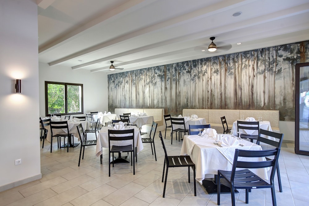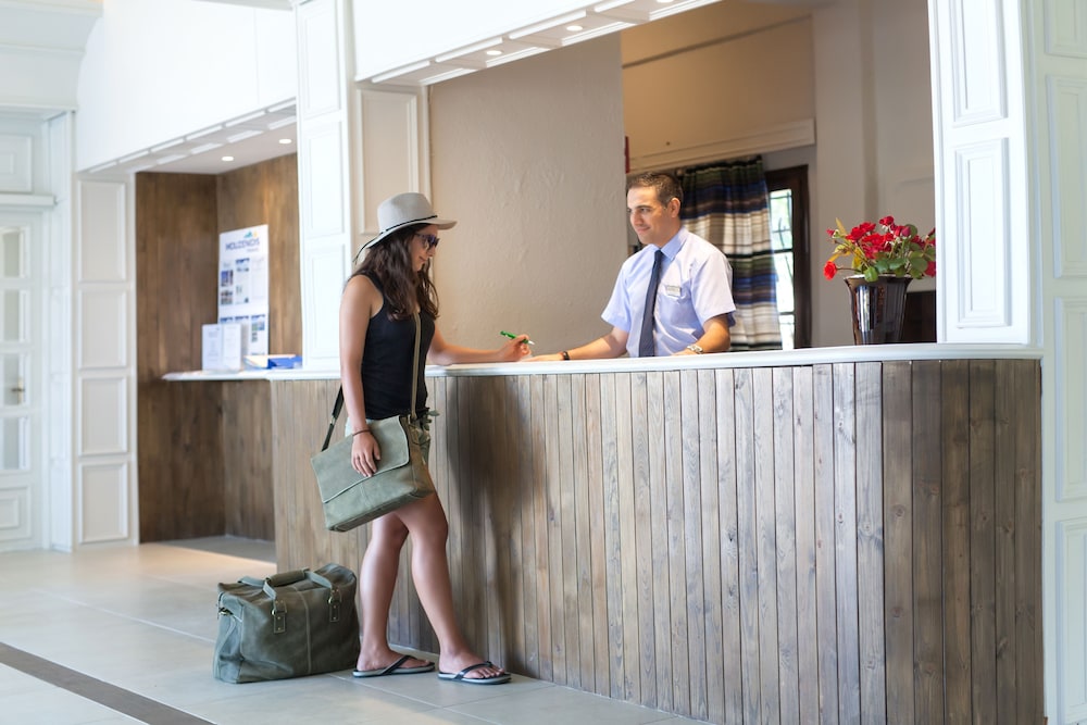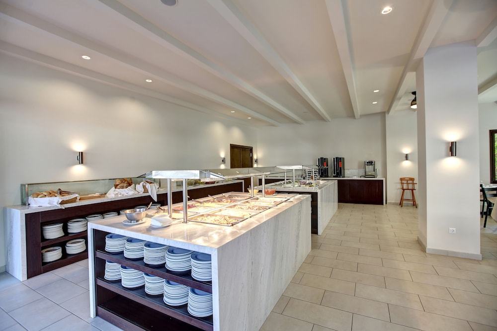 This hotel is situated just a kilometre from the village of Kallithea meaning "beautiful view", amidst natural surroundings with a wonderful outlook close to the sea. Due to the excellent location of its buildings, the hotel offers a panoramic ocean view amongst gardens blooming with rose bushes. The serenity of the grounds, with its intertwining lanes, waterfalls and traditional architecture, is certainly an alternative proposal for travellers who seek tranquillity. However there is also a children's playground for the younger guests. The hotel provides a range of eating places serving a variety of cuisine. There is an outdoor swimming pool, but for those who prefer to swim in the crystal clear Mediterranean waters the beach is not far off. The palm trees and beautifully tended grounds lend an exotic beauty to the already stunning setting.