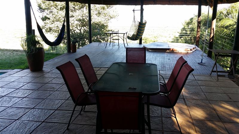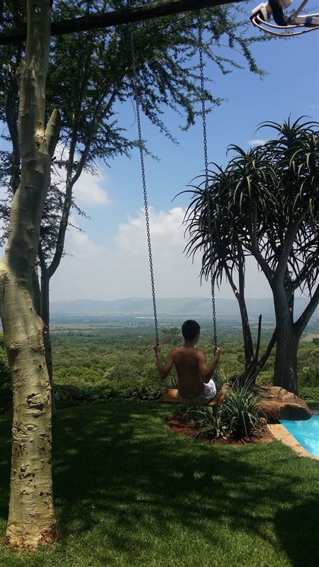 Magaliesberg Mountain Lodge is a large three bedroom thatched house tucked away up, high in the Magaliesberg mountains, with breath-taking views towards Hartebeespoort dam. The property is ideal for families and outdoor enthusiasts. The accommodation is private and secluded.The unit offers three spacious bedrooms, two bathrooms and a fully equipped living area with kitchen, bar and lounge. Other facilities include a fantastic swimming pool, large lapa and outdoor furniture, open fire cooking, pond and water features. The pool is not enclosed and caution is advised for parents with children tha