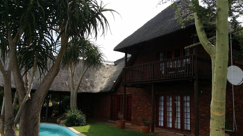 Magaliesberg Mountain Lodge is a large three bedroom thatched house tucked away up, high in the Magaliesberg mountains, with breath-taking views towards Hartebeespoort dam. The property is ideal for families and outdoor enthusiasts. The accommodation is private and secluded.The unit offers three spacious bedrooms, two bathrooms and a fully equipped living area with kitchen, bar and lounge. Other facilities include a fantastic swimming pool, large lapa and outdoor furniture, open fire cooking, pond and water features. The pool is not enclosed and caution is advised for parents with children that cannot swim. A snooker table, table tennis table, darts are available for use. There is also a Jacuzzi that can be used with prior arrangement and for additional cost of R200 per 4 hour use to cover all running costs. The jacuzzi is heated by a unique wood fired system, and has jets and a blower to ensure maximum pleasure. David the caretaker will arrange operation of the jacuzzi but payment should be made prior to arrival.