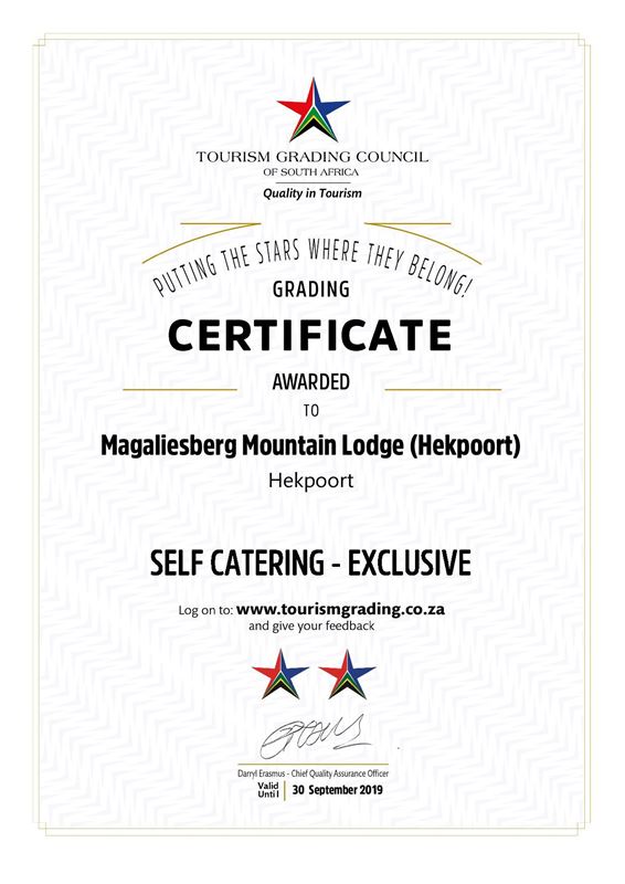 The lodge is situated within a group of un-fenced farms allowing game to move freely across an 800 Hectare area. Game that could possibly be spotted at the lodge includes giraffe, eland, kudu, zebra, impala, water buck, klipspringers, baboons etc. Stepped tracks allows for a pleasant hike to the top of the mountain.A well-known hike to the famous castle gorge with rock pools and waterfalls starts close to the lodge.The lodge is fairly high in the mountains and the road is rocky and rough in a few places. It is not suitable for vehicles that have a low clearance or low power. The road to the lodge comprises of 8 kilometres of gravel road which can get quite muddy after big rains.Linen, crockery and cutlery is provided and the lodge is cleaned and tidied once per day (except on public holidays).The key attraction of the venue is the outdoor experience. The indoor accommodation is simple, but comfortable and very spacious.