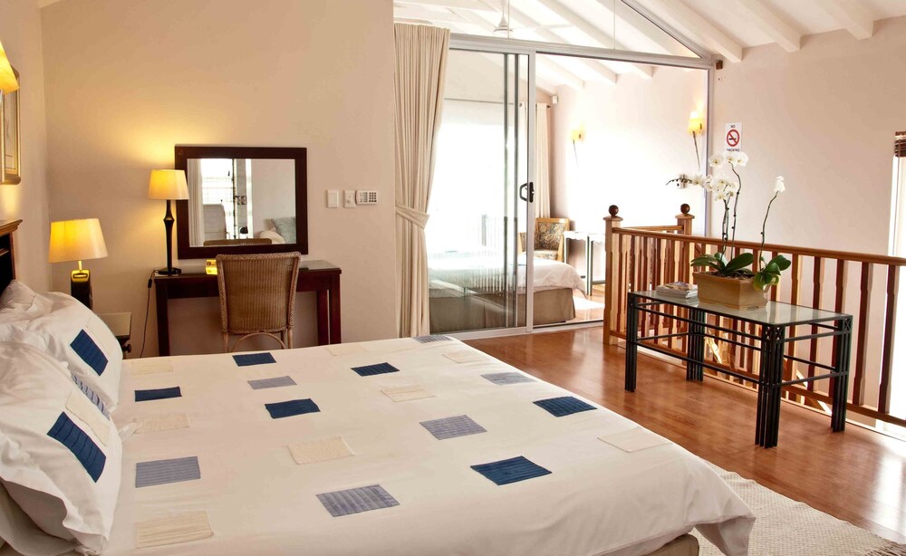 The Manaar House is situated in the beautiful coastal resort town of Umhlanga Rocks. Guests have the choice of staying in the bed and breakfast or choosing the self-catering apartment in this vacation rental.The Manaar House luxury self-catering apartment is built on two levels. Downstairs consists of a lounge, dining room, kitchen and guest toilet. Upstairs consists of a large airy bedroom with a king-size bed and a beautifully appointed full bathroom and toilet. There is an additional bedroom upstairs with two single beds which can be converted into a second king-size bed. Please