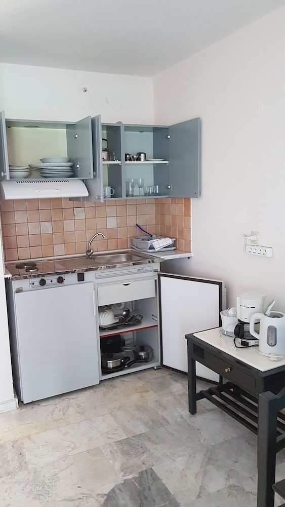 Right on the beach of Agia Marina Marita's Apartments is set in a lush 7000 m² garden with an outdoor pool and a small playground. It offers self-catered accommodation and free Wi-Fi throughout.All air-conditioned studios and apartments are spacious and open to a balcony or patio with garden views while some also enjoy side Cretan Sea views. Each has a kitchenette with a mini fridge cooking hobs and coffee maker. A TV and hairdryer are included.Guests will find taverns and mini markets within 50 metres from Marita's. The scenic town of Chania is at 9 km while the lively Platanias is 2 km away. Free private parking is available on site.