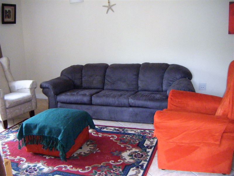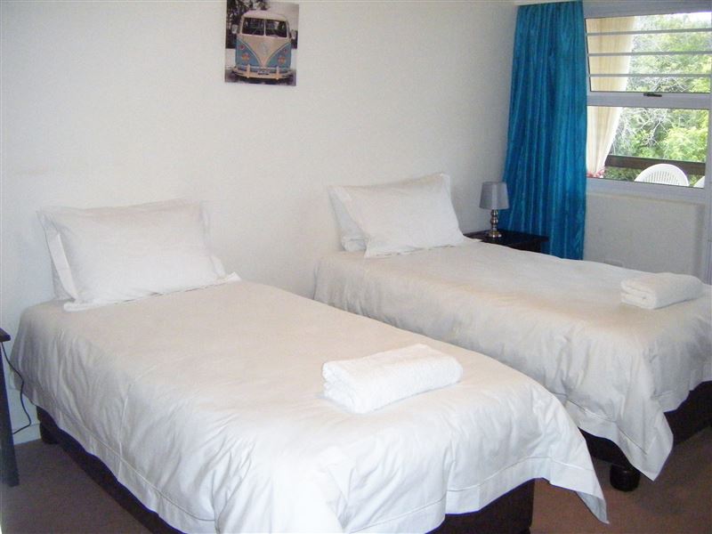 Marrakesh is a small apartment block in the heart of Plettenberg Bay. It is a mere 400m from the blue flag beach known as Robberg 5 and is also a mere 10 minute walk to shops and restaurants. This well appointed three bedroom apartment has larger than average bedrooms, two bathrooms consisting of one with a bath and the other a shower as well as a guest toilet. The kitchen is large and has all the usual appliances as well as a washing machine and a gas stove. There is a flat screen TV in the lounge and a dining area as well as a desk area for laptops or general working area. The