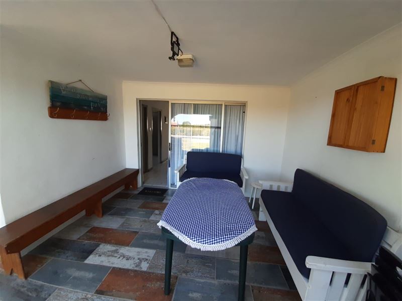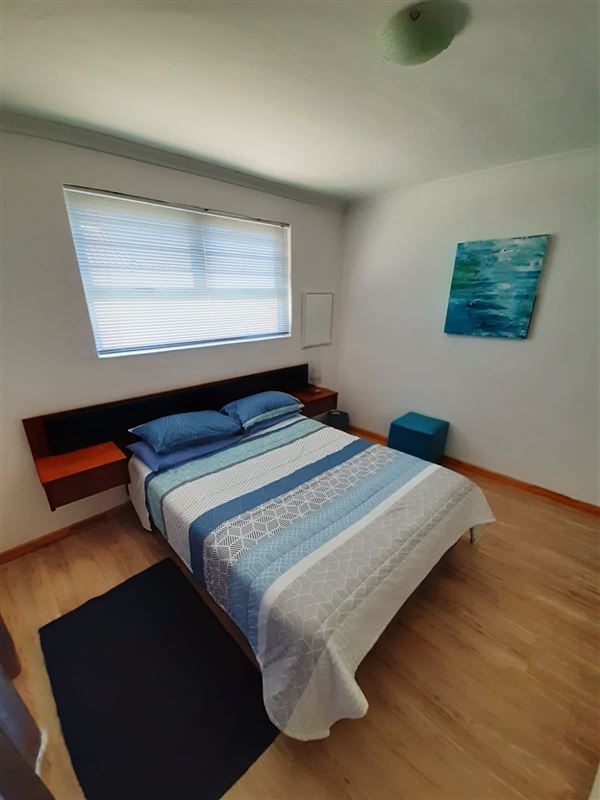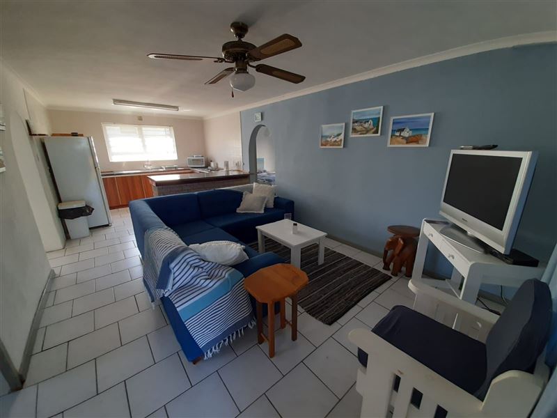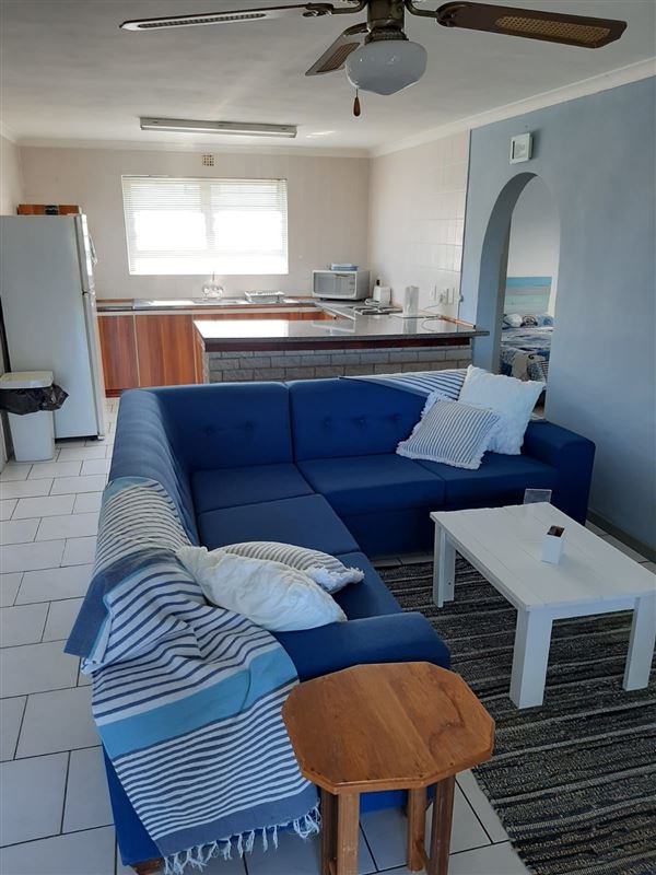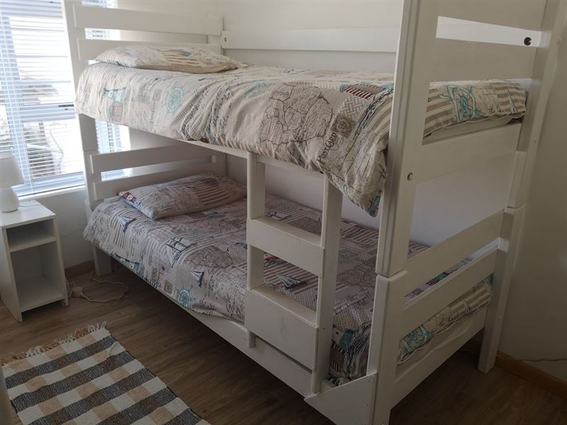 Mart-Inn is a cosy 3 bedroom self-catering flat let in Yzerfontein. Situated opposite the caravan park, it is a quick walk to the main beach, recreational club, shops, liquor store, etc.The open plan lounge/kitchen walks out onto a sheltered covered stoep and outside braai.The property can accommodate up to 6 people. There are 2 bedrooms with double beds and a 3rd bedroom with a bunk bed ideal for kids. There is one full bathroom.The kitchen is equipped with a microwave and built in oven and hob.Ample parking is available outside.Small pets are welcome.Fu