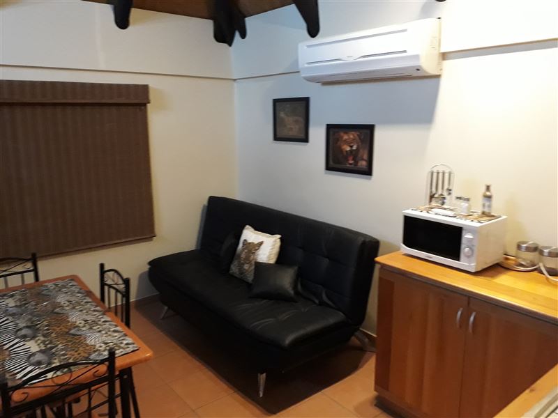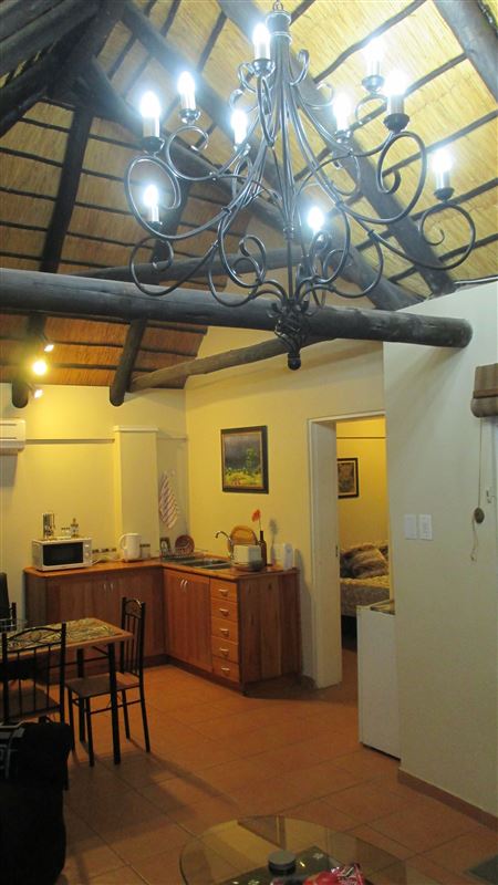 Nestled in the wild of Phalaborwa lies the tranquil self-catering unit, Marula Garden Cottage. Here a family can explore the area and relax in comfort.The unit is composed of one bedroom with a double bed made up with beautiful linen. The bedroom has a fan as well as air-conditioning.An en-suite bathroom is fitted in the unit and is equipped with a shower. Towels and toiletries are provided but we kindly ask that you bring your own beach towels.The kitchenette provides a cosy space for cooking and is fitted with a fridge, freezer, microwave, stove, cutler