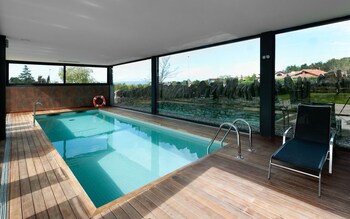Mas Albereda is a restored stone farmhouse set in the Catalonian countryside 7 km from Vic. It offers an indoor pool free Wi-Fi and air-conditioned rooms with a minibar and TV.Rooms at Hotel Mas Albereda combine original features with elegant modern design. They all have hardwood floors and central heating.The Mas Albereda’s restaurant serves modern Catalan cuisine. The daily breakfast includes typical produce from the Vic region.The hotel is just 1 km from the village of San Julià de Vilatorta and a 30-minute drive from Sau Reservoir. The area is ideal for walking mountain biking or horse riding.