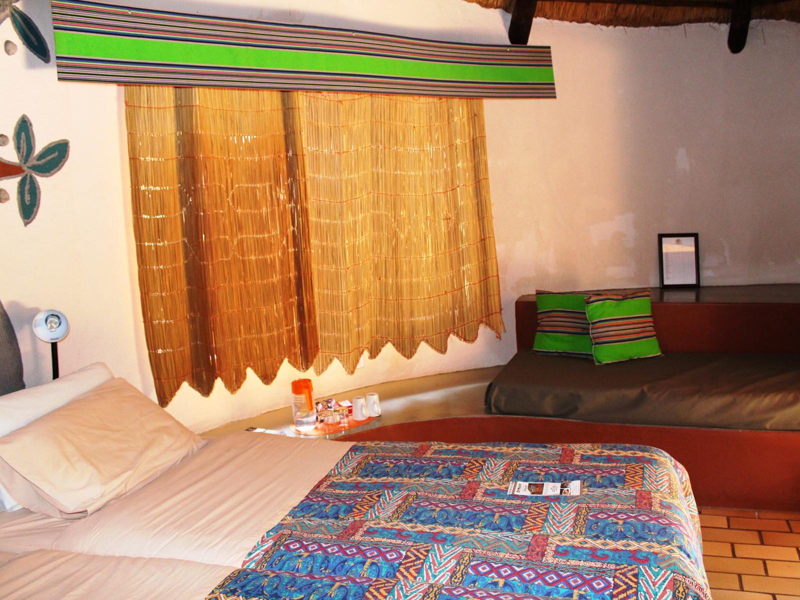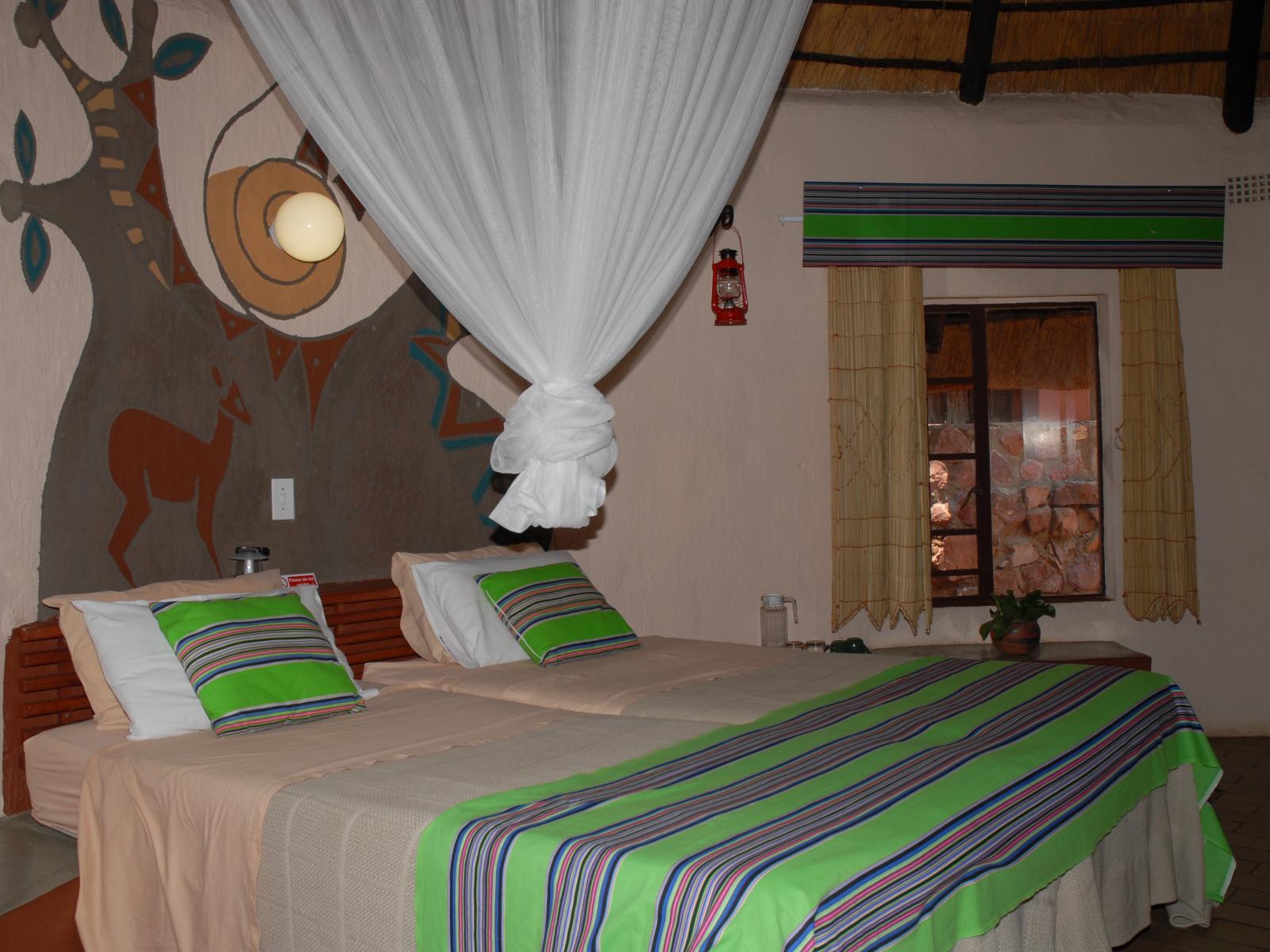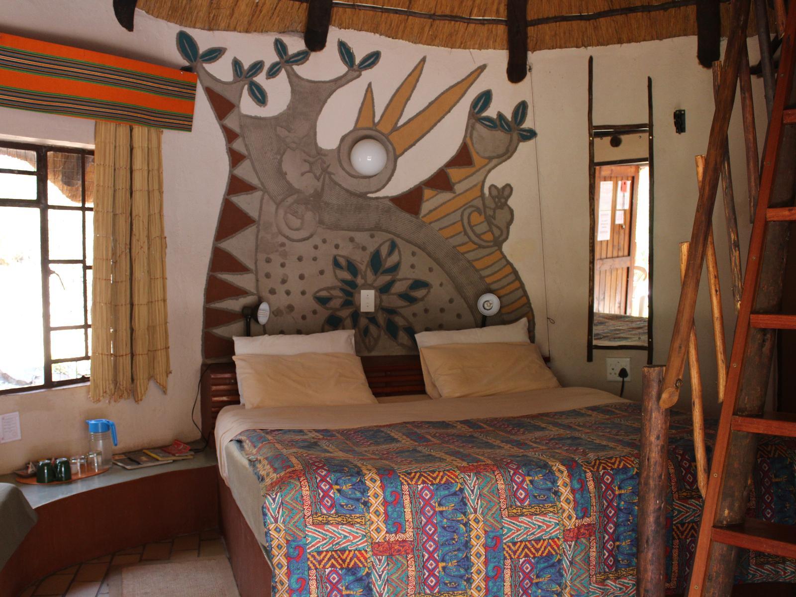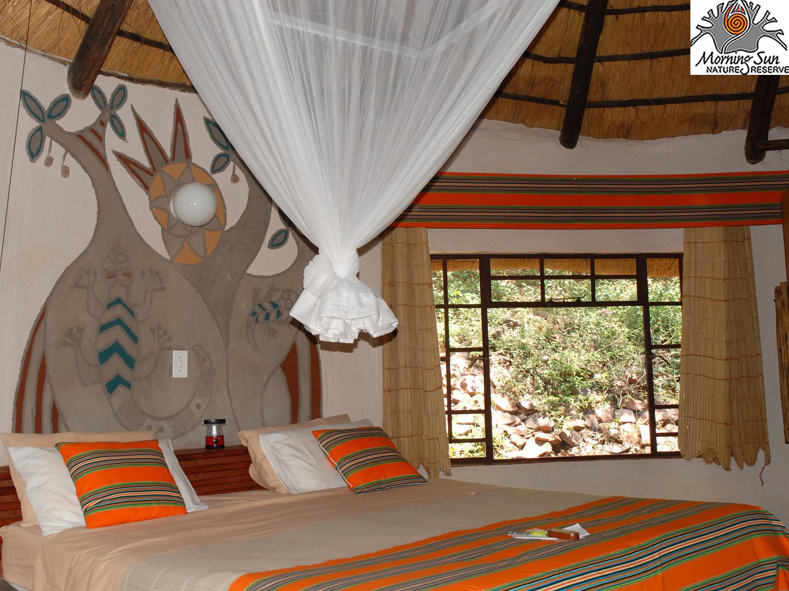 Our family friendly Mashovhela Bush Lodge lies sheltered in the magnificent Soutpansberg Mountains on the Morning Sun Nature Reserve a Natural Heritage Site only 20 km from Louis Trichardt/Makhado in the northern part of South Africa’s province of Limpopo. Mashovhela Bush Lodge is 3 star graded, with ethnically decorated 10 en-suite chalets and two self-catering annex Safari tents which evoke a special Venda village atmosphere. It is truly a value for money breakaway filled with tours to the mystical forests, sacred lakes, water spirits, stunning scenery and famous Venda culture o