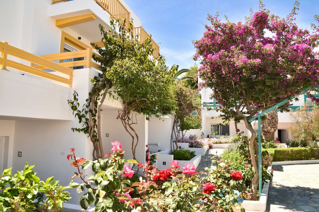 Located frontline to the sea, this attractive hotel is set on the edge of the quiet fishing village of Mastichari on the northern coast of the lovely island of Kos with its long sandy beaches and crystal-clear waters of the Aegean Sea. From the small port of Mastichari, the neighbouring island of Kalymnos can be easily reached. The international airport of Kos and the island capital, Kos Town, are 6 km and 22 km away, respectively.