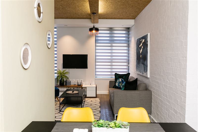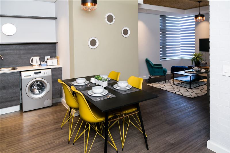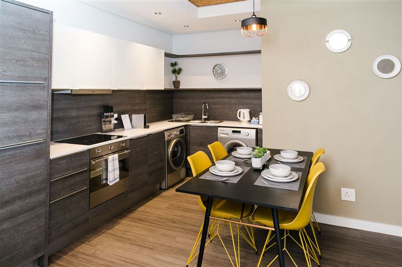 Matrix 513 is a modern self-catering unit located in the secure Matrix building in Century City. This establishment is suitable for business travelers and holidaymakers.The unit can accommodate four guests and comprises two bedrooms, one bathroom and an open-plan kitchen, dining area, and living area. Each bedroom has a queen-size bed and a safe to store valuables. The bathroom has a shower, basin, and toilet.The kitchen is fully equipped with a fridge-freezer, stove, oven and other modern appliances. There is also a washing machine and an iron with an ironing board. Th