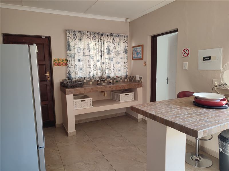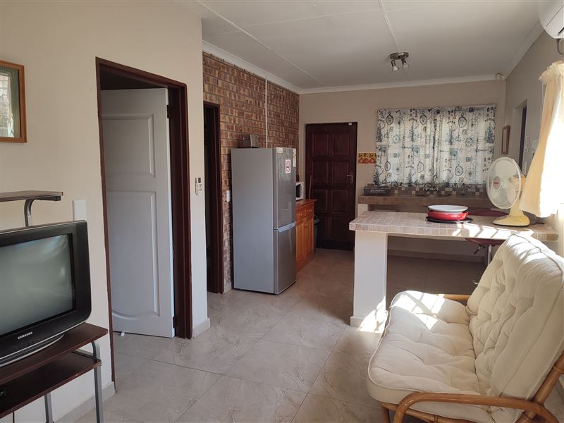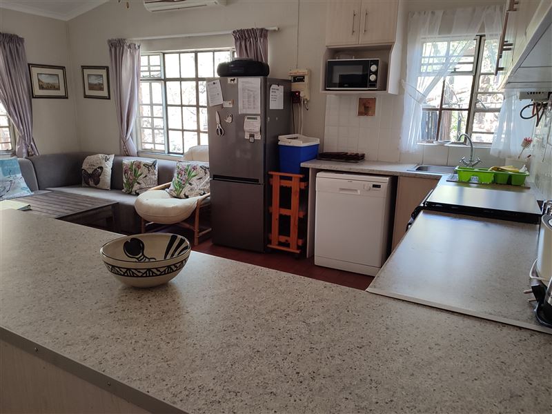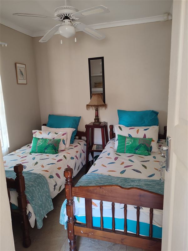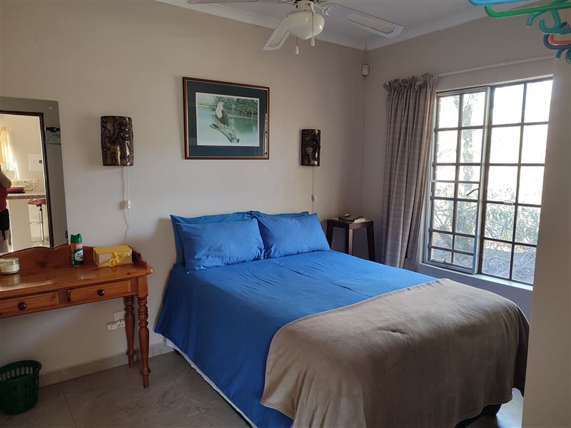 Enjoy our two bedroom self-catering house with two bathrooms and fully equipped kitchen that includes a dishwasher. The house sleeps four comfortably. The main bedroom has a queen-size bed and the second bedroom has two single beds. Bedding is provided but guests are required to bring their own towels. All windows have mosquito netting and each room is equipped with ceiling fans. Clients can connect their single view DStv decoder (cables provided) or external hard drive (USB port) to the television provided at the house. The house is air-conditioned with a large outdoor entertainme