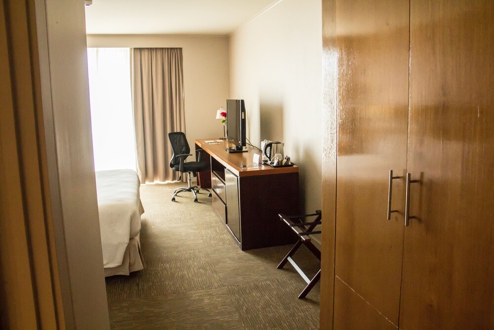 Top amenities include an indoor pool and soothing spa services at the non-smoking DoubleTree by Hilton Calama. All 148 rooms at the six-story DoubleTree by Hilton Calama offer free Wi-Fi LCD TVs and mini-fridgesLinger over meals in the on-site restaurant or opt for 24-hour room service. Pass free time with a swim in the heated indoor pool some me-time in the sauna or spa or in the fitness room. Stop by the 24-hour business center to check in with the office then visit the concierge desk for area advice. There's also a casino and a gift shop on board. Set in the Atacama Desert the DoubleTree is located in Calama 62 miles northwest of the R.P. Gustavo Le Paige Archaeological Museum. The mine at Chuquicamata is within 15 miles. Tour the small village of San Pedro de Atacama a 62-mile drive from the hotel. Imagine what the moon's surface might look like at the aptly named Moon Valley about 60 miles from the hotel. El Loa International Airport is four miles from the hotel.