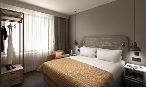 The New Ellington Hotel is a 5-minute walk from Leeds Train Station and Leeds Shopping Plaza. The New Ellington is a boutique hotel and offers free WiFi throughout the whole hotel and in all bedrooms.All rooms have Egyptian cotton sheets and toiletries. Executive rooms have bathrobes slippers and Nespresso coffee machines.The New Ellington's Atrium bar serves teas coffees drinks and cocktails with a selection of specialty gins.The New Ellington is named after Duke Ellington who played the 1958 Leeds Music Festival. The hotels art deco interiors are inspired by New Orleans.