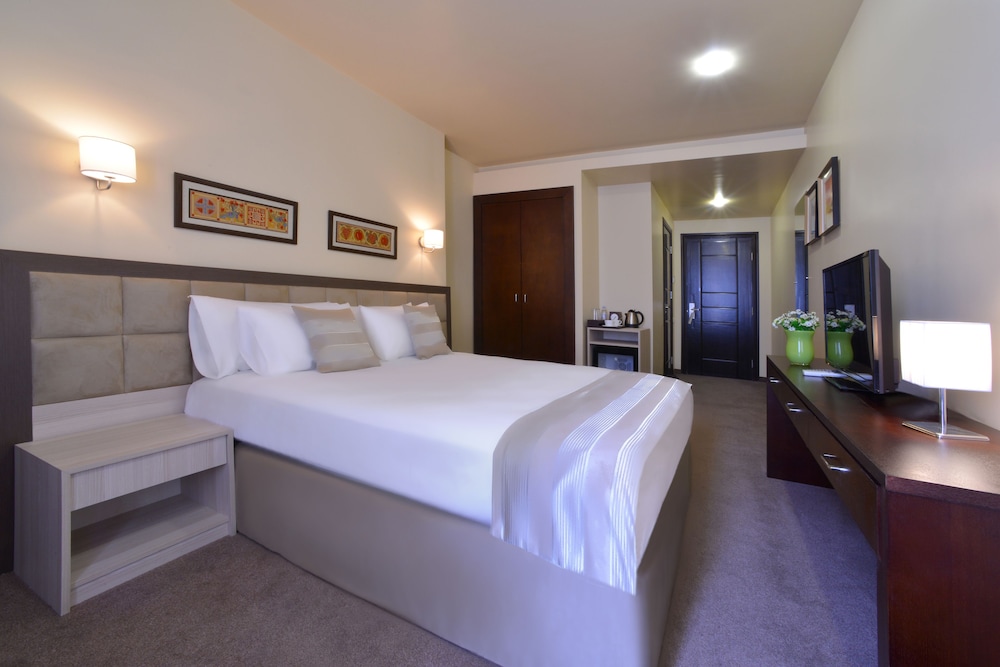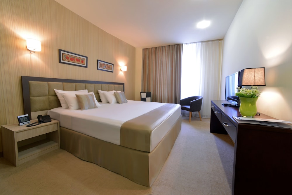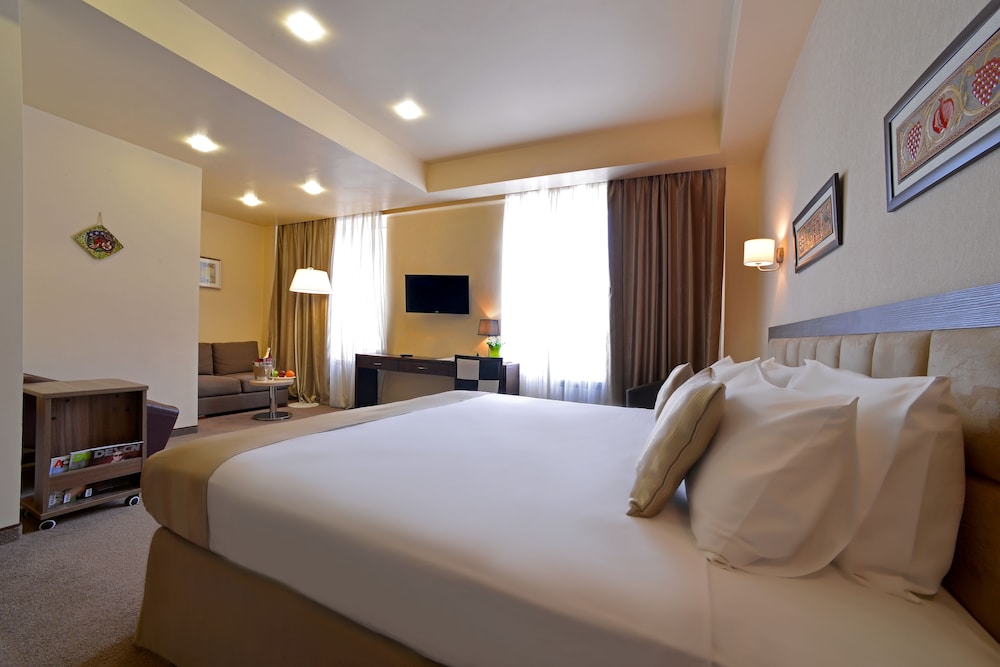 Minotel Barsam Suites is in the heart of Yerevan, walking distance from Republic Square and History Museum of Armenia. This 4-star hotel is within close proximity of Singing Fountains and National Gallery of Armenia.Rooms Make yourself at home in one of the 49 guestrooms featuring refrigerators and flat-screen televisions. Complimentary wireless Internet access keeps you connected, and satellite programming is available for your entertainment. Private bathrooms have complimentary toiletries and hair dryers. Conveniences include minibars and complimentary bottled water, as well as phones with free local calls. Take in the views from a terrace and make use of amenities such as complimentary wireless Internet access and concierge services.Dining Satisfy your appetite at the hotel's restaurant, which serves breakfast, lunch, and dinner, or stay in and take advantage of 24-hour room service. Quench your thirst with your favorite drink at a bar/lounge.Business, Other Amenities Free self parking is available onsite.