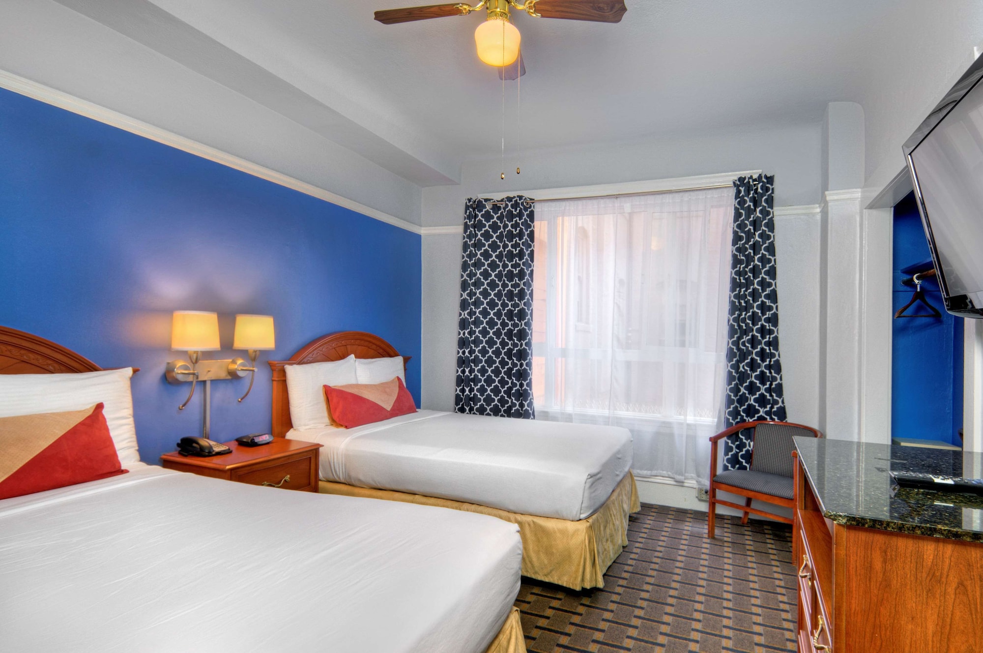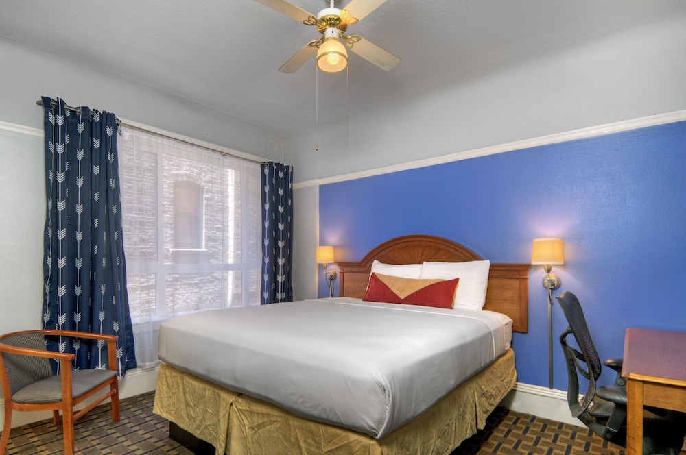 Located in downtown San Francisco's theater district, less than 10 minutes' walk to the cable car line to Fisherman's Wharf, this hotel features a concierge and tour desk. The hotel also offers freee Wi-Fi, Cable TV with HBO, a work desk and include a safety deposit box. The elegant lobby at the Hotel has marble floors and dark wood detailing. The front desk offers complimentary coffee and is staffed 24 hours a day.