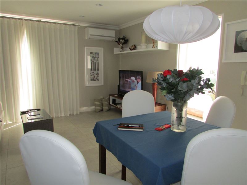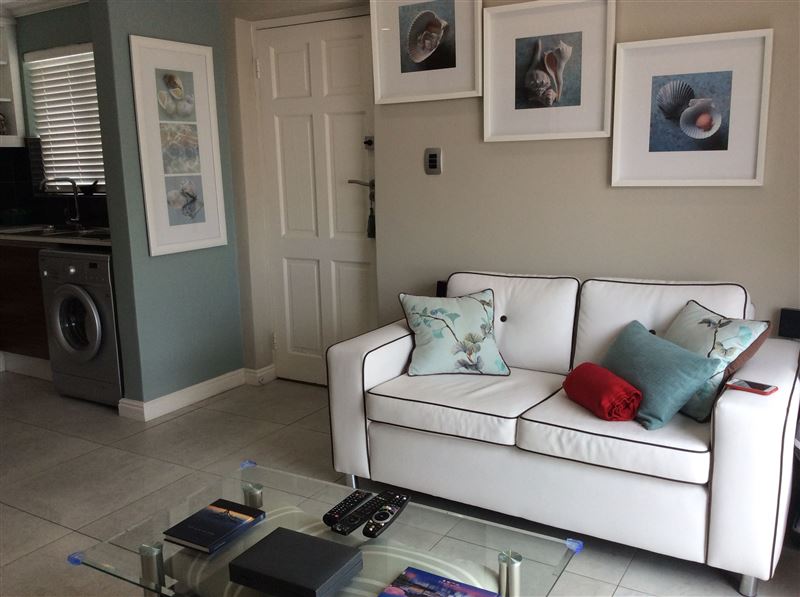 This self-catering apartment is well situated in the beautiful area of West Beach in a secure complex with great views of Table Mountain, Robben Island and the Atlantic Ocean.Conveniently located within a block from the beach, this modern apartment can accommodate two guests and comprises of one bedroom with a queen-size bed in the bedroom. The apartment is air-conditioned and the kitchen is well equipped for self-catering and includes a stove, oven, fridge-freezer, microwave, washing machine and all small appliances. The comfortable lounge area includes TV