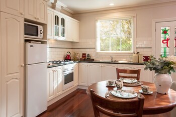 Moulton Park is an exclusive retreat set in three acres of parklike gardens in Melbourne's Dandenong Ranges. Adjacent to the historic private residence are two stylish, separate cottages created for your indulgence. Snuggle up by the open fires, relax in a deep double spa bath, take tennis on Moulton Park's adjacent private court and enjoy the true tranquillity, romance and privacy that is Moulton Park. Moulton Park is central to all the attractions of The Dandenong Ranges - walk in the forest, only an 8 minute walk to the nearby quaint Sassafras Village, 2 km drive to Olinda Village, 3 km drive to Mount Dandenong Village, explore antique and craft shops, take a trip to a time long ago when steam transport was king on the Dandenongs world famous Puffing Billy Steam Train which is just 4 km away, take tea in truly delightful tearooms or dine at any one of the eclectic restaurants in the area, approaching nearly 30 within a 4 km radius of the property. Further afield take a bush walk in any one of the three separate rainforests contained within the Dandenong Ranges, or visit the 60 unique wineries of the Yarra Valley, all within an hours drive of Moulton Park.