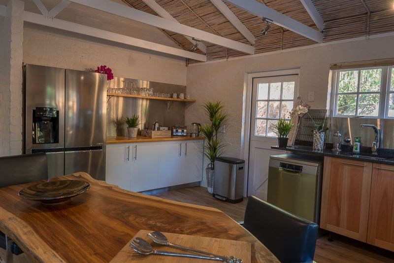 Mountain Cottage is a stylish newly renovated cottage set in the tranquil surroundings of the Tokai Forest and Constantia Winelands. A “stones throw” from the all major tourist attractions in Cape Town including Steenberg Golf Course, Constantia Wine Route and of course Kalk Bay and Cape Point. The cottage is a 3 bedroom sharing and can sleep, 6 people. The main bedroom has a king size extra length bed and en-suite with shower and toilet. the other 2 bedrooms can be either an extra length king size bed or 2 single extra length beds. The 2nd bathroom is a sharing bathroom with a