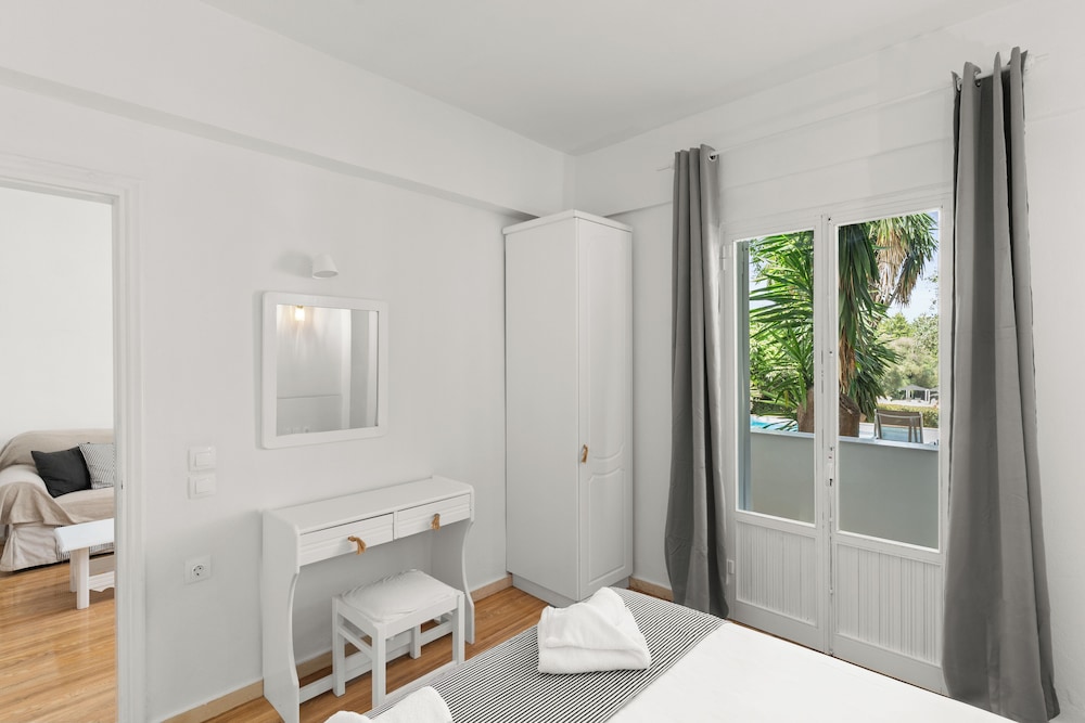 Facilities and services include 24 hours reception, restaurant, bar, wireless Internet access, swimming pool and parking.Rooms feature air conditioning, wireless Internet access, telephone, TV, safe, fridge, coffee/tea maker, hairdryer and bathroom.** Please note that some of the above facilities may be closed due to weather / seasonal conditions.Address: Acharavi, 49081 Corfu, Greece.