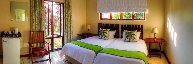 Musketeers Lodge is located on the outskirts of Eloana, near the Tshabalala Game Sanctuary in Zimbabwe and boasts rolling green lawns, indigenous and exotic trees. Free Wi-Fi is available. All rooms in the lodge have en suite bathrooms, and fitted with TVs with satellite channels. Each room also features full length windows.Its on-site restaurant serves local and continental dishes in menu and buffet options. Meals can also be enjoyed al fresco.The gardens are well maintained and stay green throughout the year. Airport transfers are available at a fee. Laundry and
