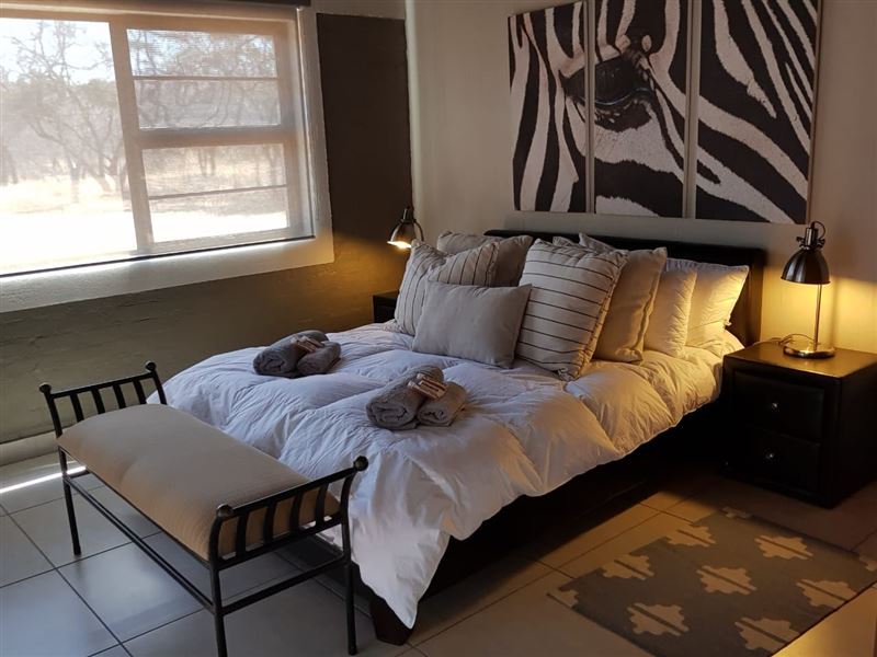 Nageng Lodge is a private accommodation, and we cater for a getaway weekend, relaxing holiday or even overnight business travellers.The lodge is the ideal family getaway for nature lovers. Come and spend a few days in this quite wildlife sanctuary set in the African bush. Rest, rejuvenate and enjoy the beauty and peacefulness of the surrounding reserve. This tranquil setting is very private and quiet. It can accommodate up to Ten guests, that boasts Five en-suite double air-conditioned bedrooms. Bedding and towels are provided.The kitchen is fully equipped f