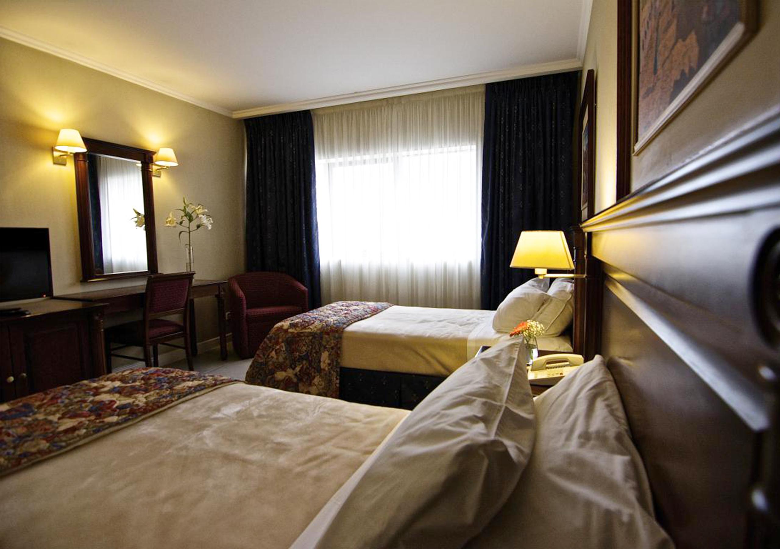 It is a 5 star hotel that has 102 rooms. All of them are equipped with air conditioning and heating, minibar, smoke detectors, safe-deposit box, key card locks, National and International Direct Dialing, TV and Internet access from every room without extra charge. Master Suites have Hot Tub. It also offers non-smoking rooms, Business Center, general uses rooms and Health Club equipped with: heated swimming pool, Sauna, spa and gymnasium.