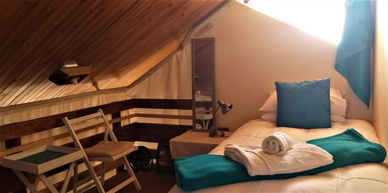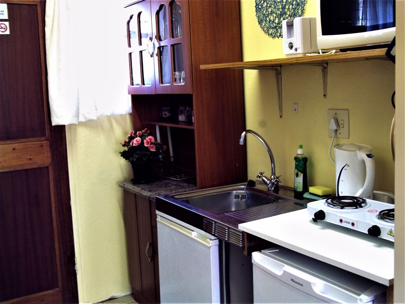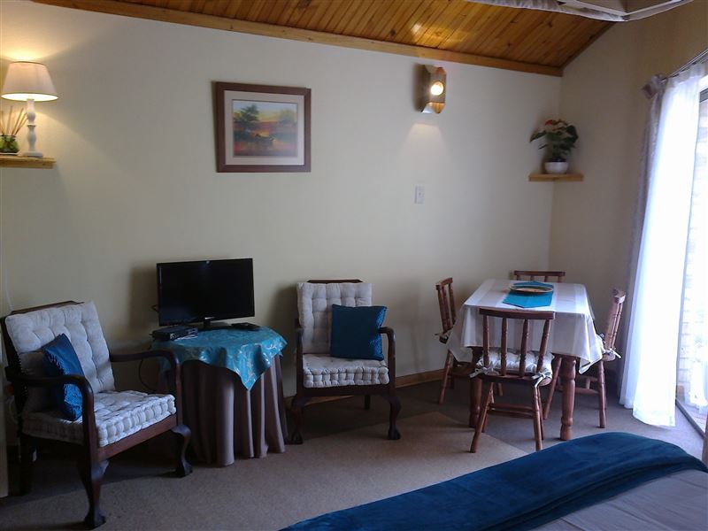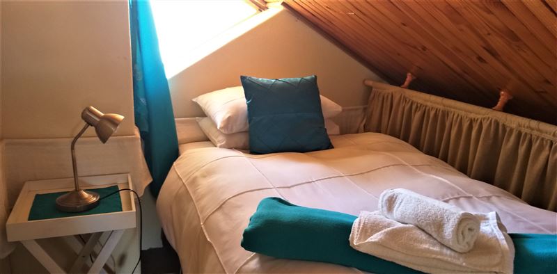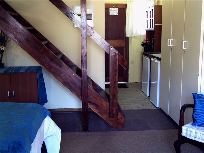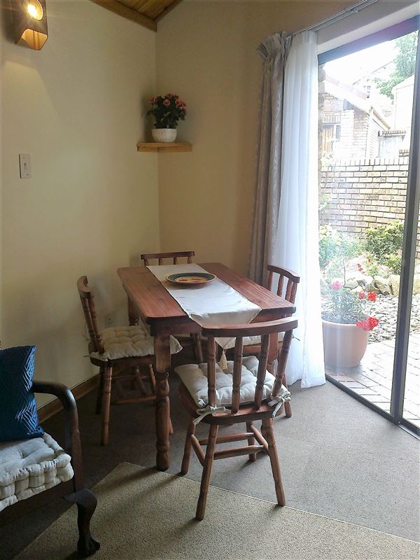 Situated within the secure Larola Terraces complex, Nandina is a charming, clean and comfortable self-catering unit, which can comfortably sleep a family of four. Nandine has a loft area with two single beds that are curtained off from each other, and a double bed on the ground floor. In winter there are electric blankets and down duvets on the beds, and electric and gas heaters are provided. The living space is open-plan with a well-equipped kitchenette, TV and seating and dining areas. The enclosed patio and garden has braai facilities and outdoor furniture.Secure off