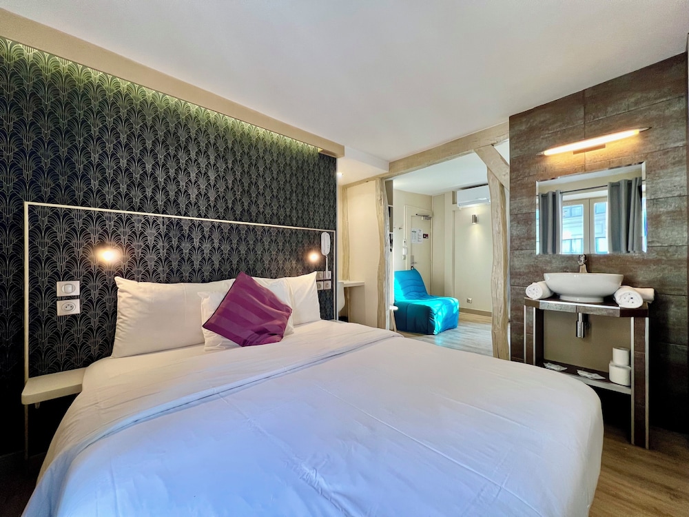 The hotel is located on a one-way street, just a few steps from a large number of tourist sites and offers the ideal base for excursions all around Paris. Paris Charles de Gaulle Airport is approximately 20 minutes' drive away from the hotel. Guests are welcomed in the lobby, which offers a 24-hour reception. Facilities on offer to guests include a TV lounge, a café and restaurant. Wireless internet is also available. The hotel offers single, double, twin and triple rooms. All rooms come with double glazing. Rooms also come fully – equipped as standard. Standard in-room amenities include Internet access and central heating are provided in all accommodation. The showers and WCs are located in the corridor. Guests can relax with the sun loungers and parasols available on the beach.