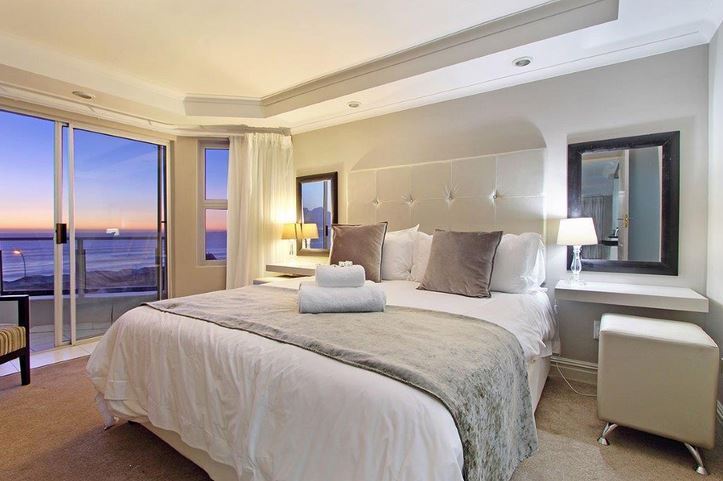 Nautica 501 is one of the most expansive self-catering apartments in Bloubergstrand. Accommodation is exceptionally spacious (175 m2), comprising of 3 double bedrooms, two featuring king-sized beds with the third containing two three-quarter (oversized single) beds, all furbished in white cotton percale linen of the highest quality. The main bedroom includes a walk-in dressing room and a safe, and furthermore is en-suite with a spa bath, shower and bidet, whilst the second bathroom features a shower.