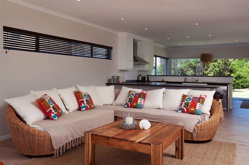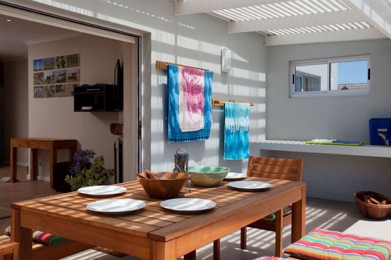 This beautiful beach house is ideal for holiday and weekend rentals, bordering a nature reserve it has its own private pathway onto the white, sandy beaches of Cape St Francis.Nautilus Beach House has an open-plan layout. Bi-fold doors at the front lead from the lounge onto the entertaining deck with its built-in braai and all-weather pergola. There are sliding doors to the back from the dining room onto the level garden, allowing the guests to enjoy the weather at any occasion. Accommodation comprises three bedrooms, 2 Queen beds (Main en-suite) and 1 children's bedroom with 4 single bunk bed