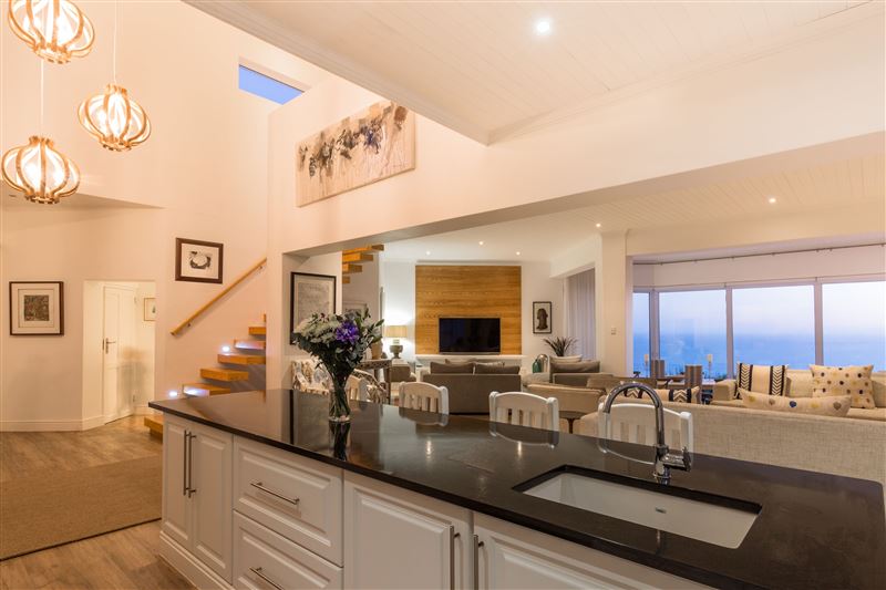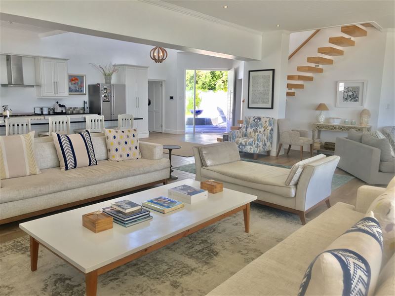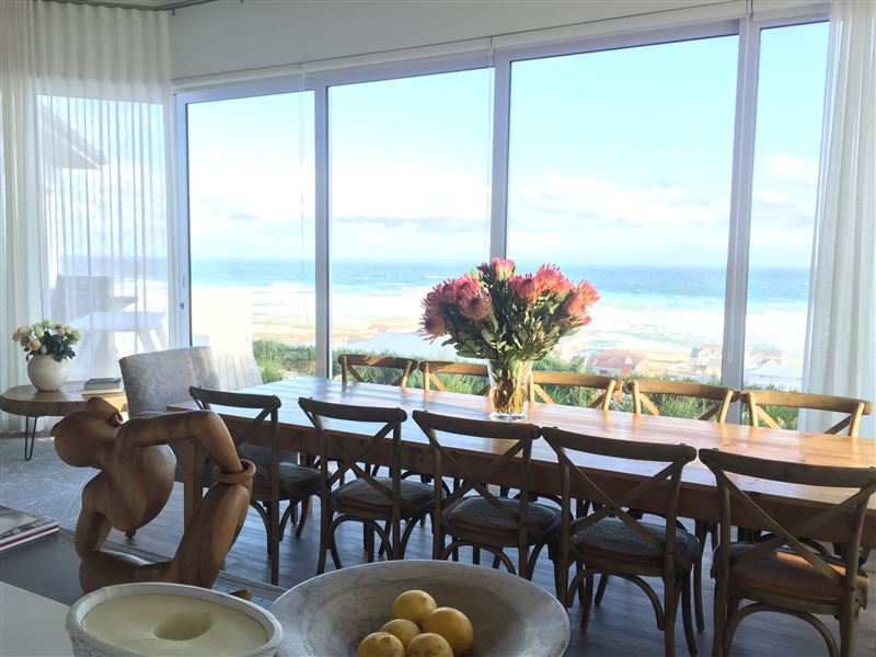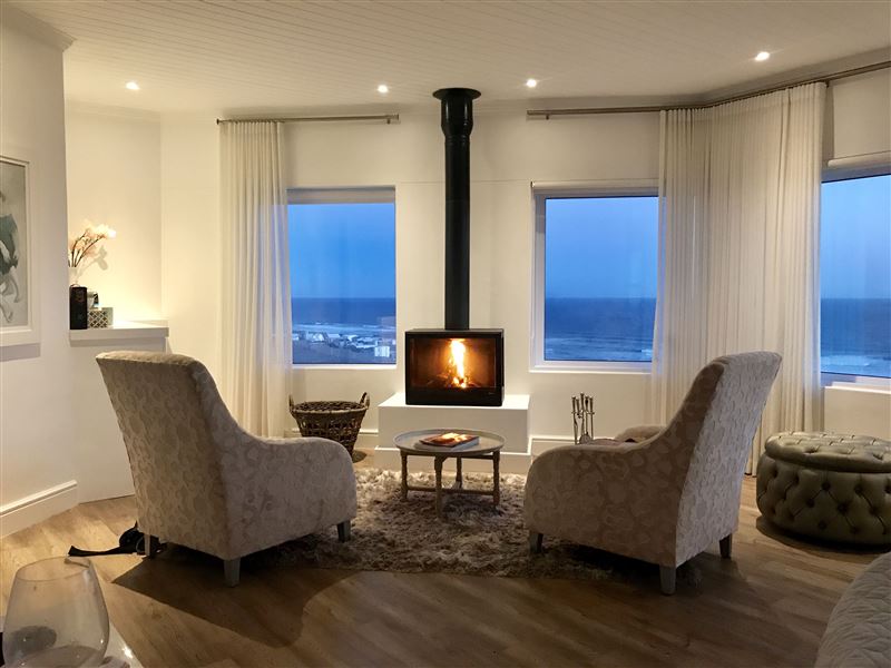 Located in Yzerfontein, directly overlooking Dassen Island and out over the Atlantic Ocean as far as Table Mountain, this modern and chic villa offers luxury, privacy, security and divine outdoor- and indoor entertainment areas.The villa is an entertainer’s dream with its astounding views and well-planned relaxation areas. When stepping into the delightful entrance garden, a sheltered firepit and cozy lounge area welcome you. The front garden, in turn, offers a large patio and barbecue area. In terms of sleeping arrangements, a master suite, 3 guest bedrooms and a sep