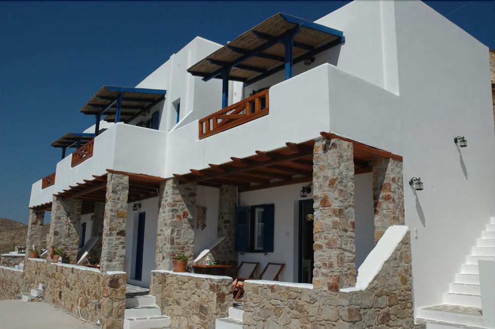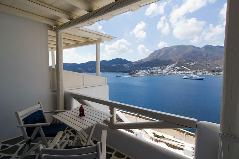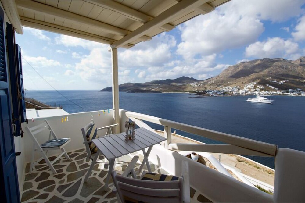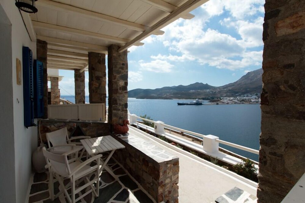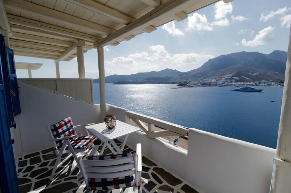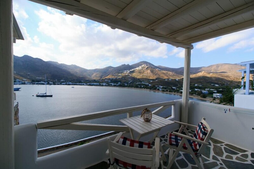 This traditionally built apartment building offers stylish self-catering accommodation in a convenient location just 300 metres from Avlomanas beach. Serifos Port with its selection of shops, lively tavernas and cafes is only 1 km away and it's just a ten minute drive to picturesque Serifos Town. The bright and airy units have been decorated in traditional Cycladic style with iron and wooden fittings, featuring and all feature a flat screen TV as well as a small kitchenette. The furnished balconies offer magnificent views out over the sparkling Aegean Sea. Guests can savour a delicious traditional breakfast with homemade pies, Greek honey, and yogurt in the stone-built dining area and enjoy spectacular views of Serifos Port from the spacious sun terrace. Free private parking is available at the property and staff will be pleased to arrange two-way transfer to the nearby harbour.
