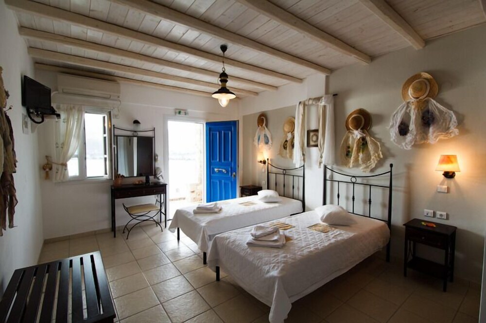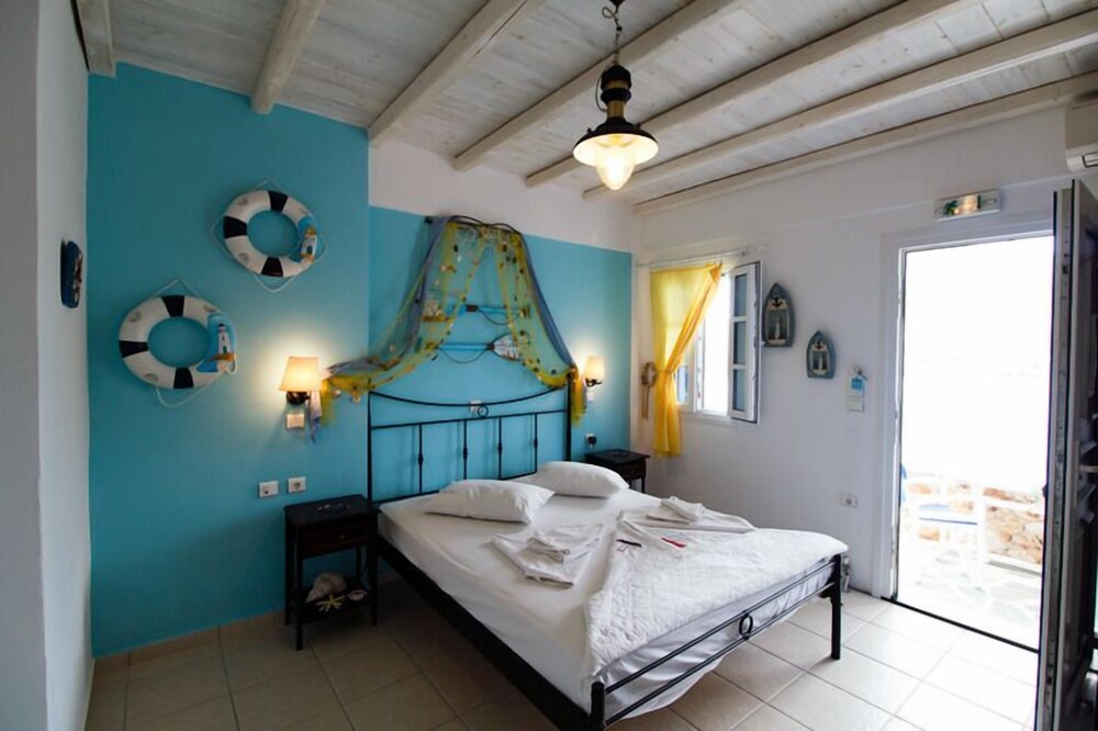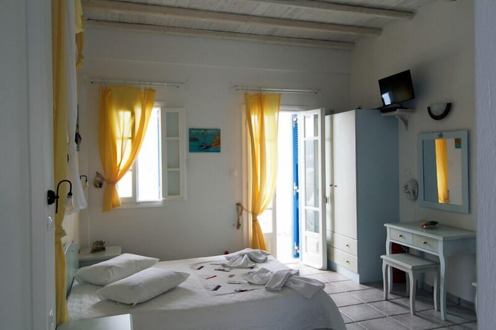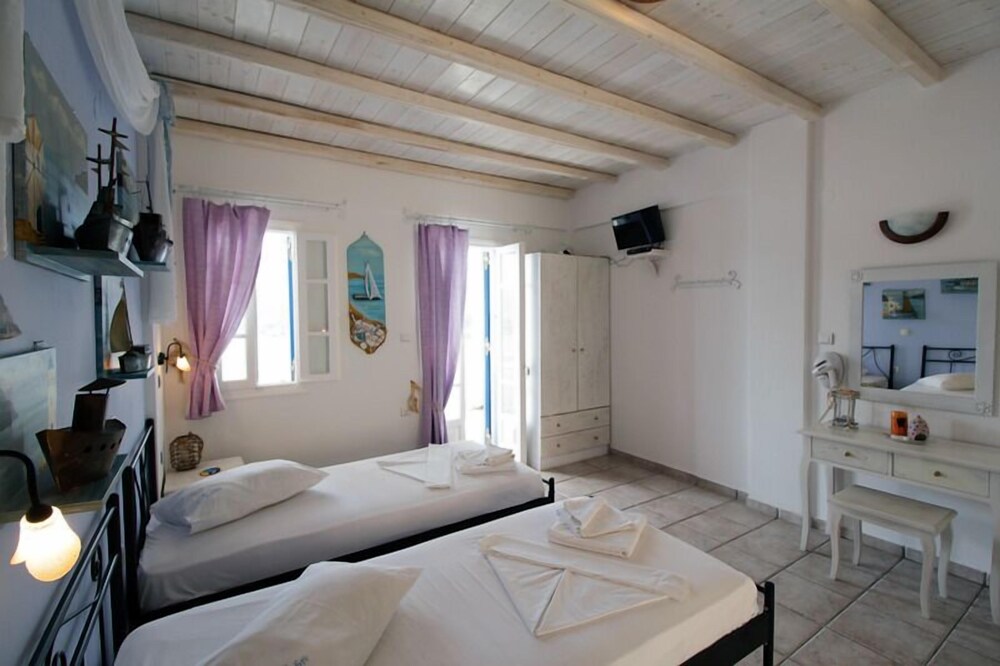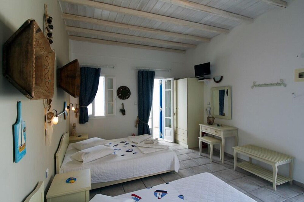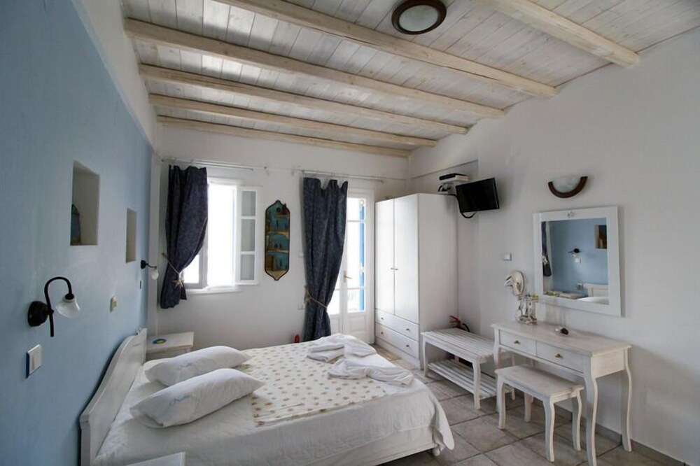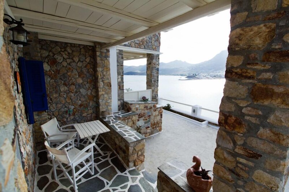 This traditionally built apartment building offers stylish self-catering accommodation in a convenient location just 300 metres from Avlomanas beach. Serifos Port with its selection of shops, lively tavernas and cafes is only 1 km away and it's just a ten minute drive to picturesque Serifos Town. The bright and airy units have been decorated in traditional Cycladic style with iron and wooden fittings, featuring and all feature a flat screen TV as well as a small kitchenette. The furnished balconies offer magnificent views out over the sparkling Aegean Sea. Guests can savour a delicious traditional breakfast with homemade pies, Greek honey, and yogurt in the stone-built dining area and enjoy spectacular views of Serifos Port from the spacious sun terrace. Free private parking is available at the property and staff will be pleased to arrange two-way transfer to the nearby harbour.