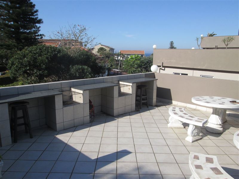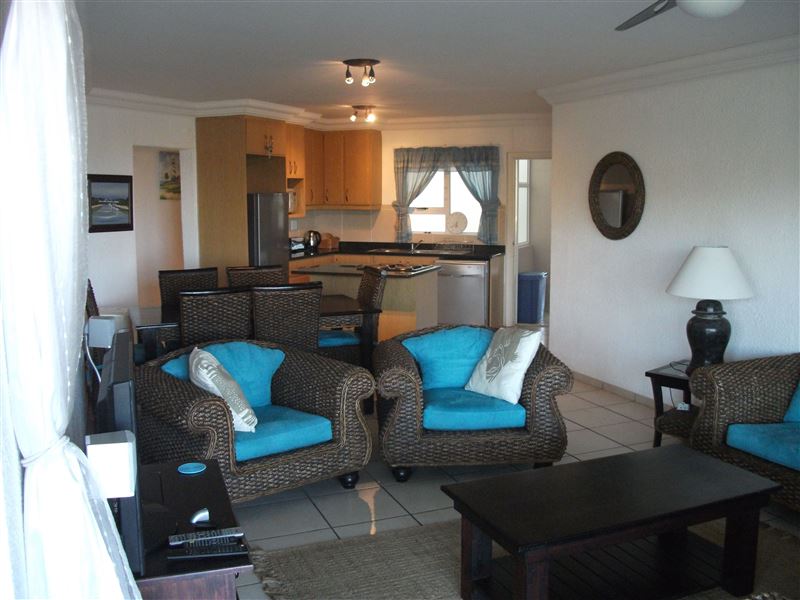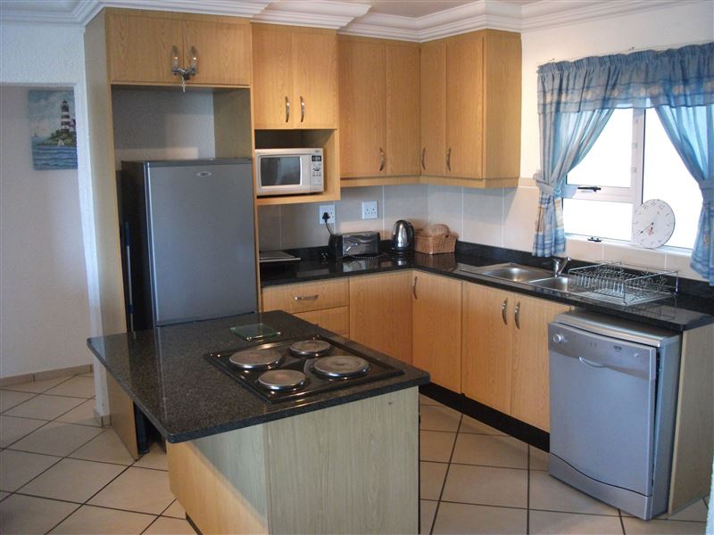 This spacious three-bedroom apartment is located in Ramsgate and has wonderful views over the Bilanholo River and the Indian Ocean. The beach is just 150 metres away, making this a wonderful summer destination. The flat features two bedrooms with twin beds and a main bedroom with a double bed, bedding and bath towels are supplied, and there a full en-suite bathroom. There is also a second, full bathroom. The open-plan living area includes a comfortable lounge area with a TV with DStv connection but not wired for Explora, Guests are required to bring their own DStv smart card and d