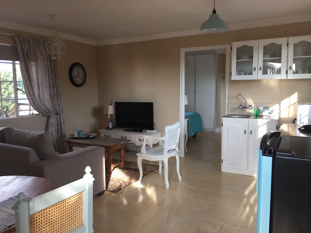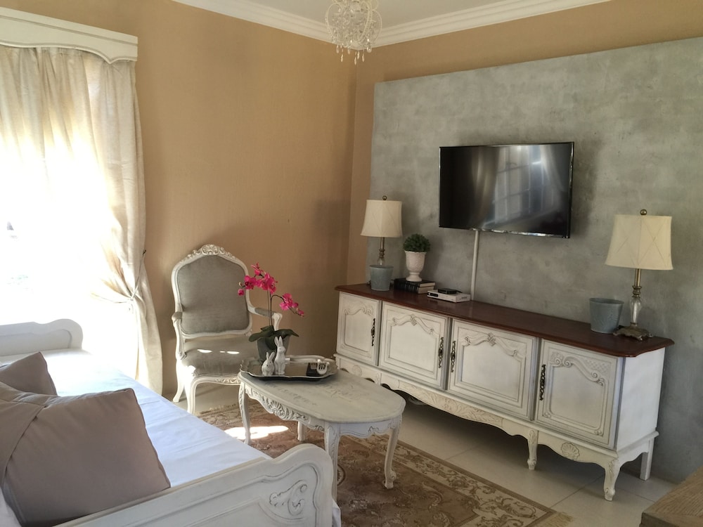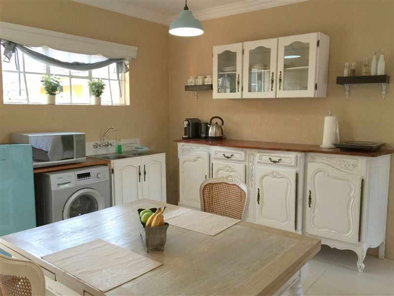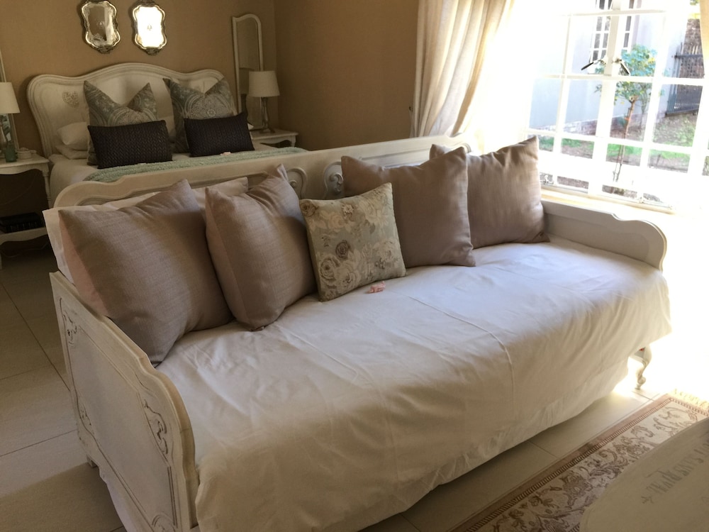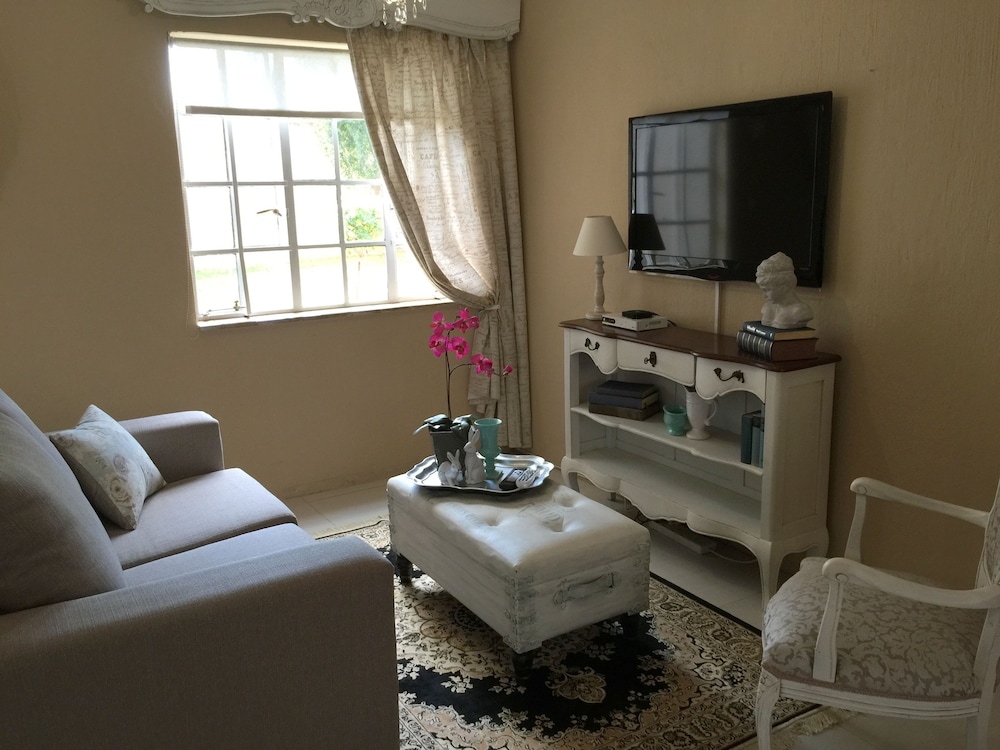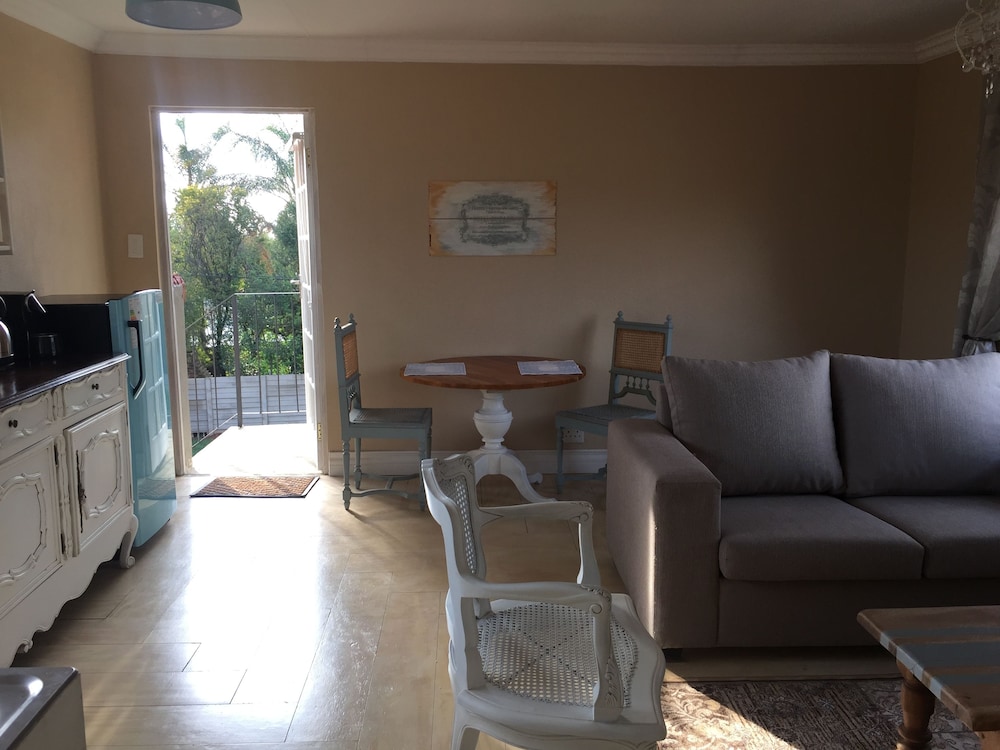 Nouveau Studios is situated in a quiet neighbourhood , with easy access to major routes. The restful, fully furnished, self-catering units with a private entrance and access to the outdoor patio and garden with pool. Classically decorated with all the luxuries needed for a great stay.We offer sunny north-facing apartments, consisting of a bedroom, sitting area with TV, a kitchen and dining area with a private bathroom. The kitchen includes a coffee station, complete with coffee machine, induction stove, microwave, fridge and a washing machine. The dining area is adequately equippe