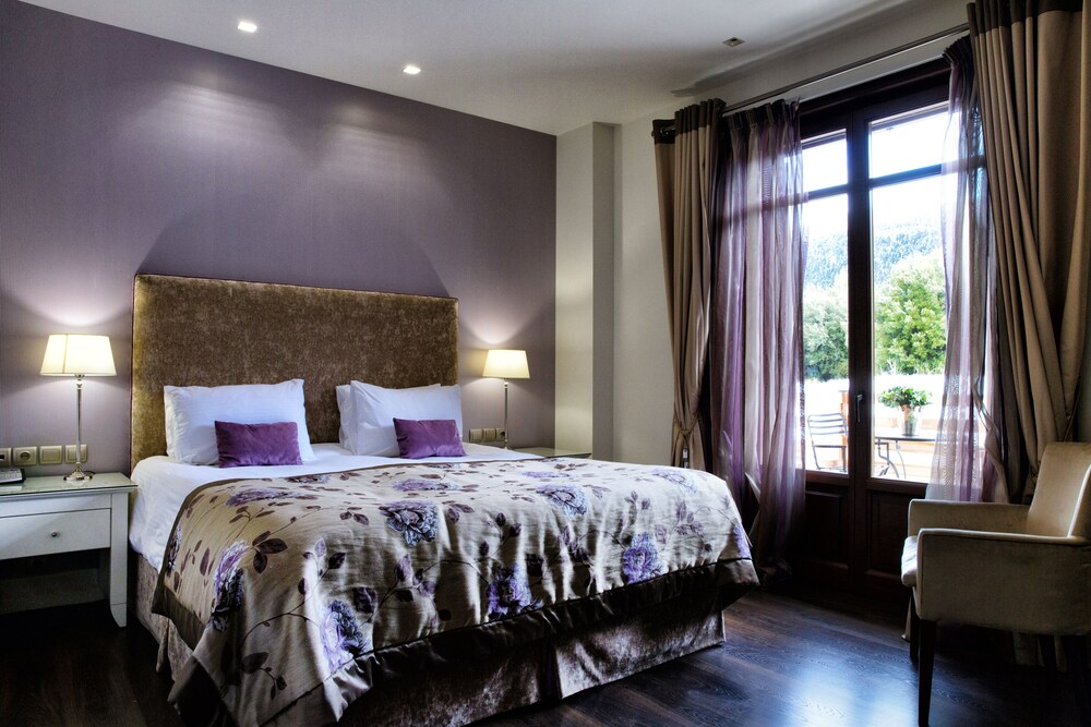 This luxury hotel and resort is located in the heart of the mountainous Arcadia region and on the outskirts of the traditional Greek village of Vytina. Its unique architecture, with stone façades and modern interiors, is fully integrated into the lush green surroundings. The property offers elegantly-decorated rooms and suites, gourmet dining and impressive open-air spaces for guests to unwind. Visitors can savour traditional Greek cuisine at the on-site restaurant or enjoy a drink at the hotel bar. Within walking distance from the establishment is the ski resort of Ostrakina, which offers several slopes in the winter. Nature lovers will enjoy the hotel's proximity to the gorge of the Milaontas River, which features beautiful hiking trails amongst verdant vegetation. Within easy reach of the hotel, adrenaline seekers will enjoy rafting, canyoning and river trekking.