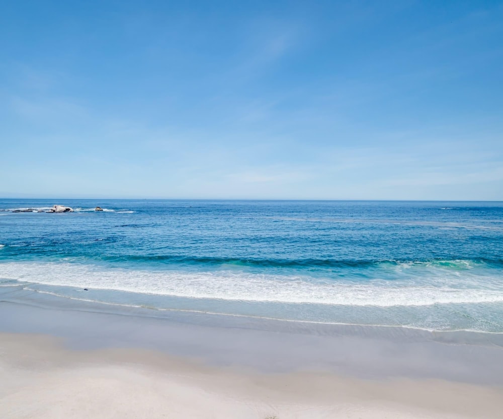 The flat is in Cape Town along the False Bay coastline in Muizenberg, a walk down to the beach for a swim or a surf. On Route to the Fish Hoek, Simons Town, Cape Point, and other beautiful sights of Cape Town. The flat is on the 2nd floor, which is accessed via a staircase. There is one parking bay available. This space is an easy, spacious home with and the necessary items to make living comfortable and convenient. There is a lovely communal swimming pool for a quick dip to cool off or relax. Kids are safe to play outside, with great security to lend a hand and ensure you feel