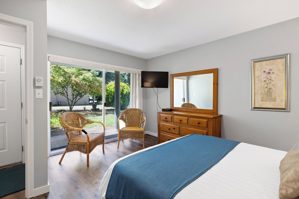 Apartment-style accommodations with full kitchens and fireplaces an outdoor pool and sports facilities await guests at Ocean Trails Resort on the shores of Rathtrevor Beach. This low-rise hotel offers 78 rooms. The apartment-style rooms include free Wi-Fi fully equipped kitchens with refrigerators stoves microwaves and coffeemakers fireplaces patios cable TV and in-room washers and dryers. Additional amenities include an outdoor pool and hot tub plus tennis basketball and volleyball courts. The hotel also provides complimentary access to a nearby gym. Parking is free. The Ocean Trails Resort is located on the shores of Rathtrevor Beach. Little Qualicum Cheeseworks is 15 minutes away. Englishman River Falls Provincial Park is 11 miles away. Nanaimo Airport is 29 miles southeast of the hotel.