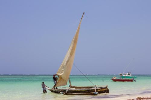 Situated on the Indian Ocean along the white sandy Diani Beach Ocean Village Club offers guests a tranquil haven.Featuring tropical decor with teak furniture all rooms come with a veranda and air-conditioning. The Deluxe Rooms all have sea views. They include a seating area with flat-screen TV and a small fridge.A selection of meals and dishes are offered from breakfast lunch and dinner as well as pizzas and cocktails can be enjoyed in Sails a la carte Restaurant or Makuti Restaurant and drinks are served at the poolside bar. Ocean Village Club also provides an intimate ambiance comprising of evening entertainment with performances by local dancers and musicians.For relaxation guests can book a massage. Diving courses can also be arranged on request.The resort is just a 10-minute drive from Ukunda village. Mombasa is located 40 km away and Moi International Airport is 50 km away.