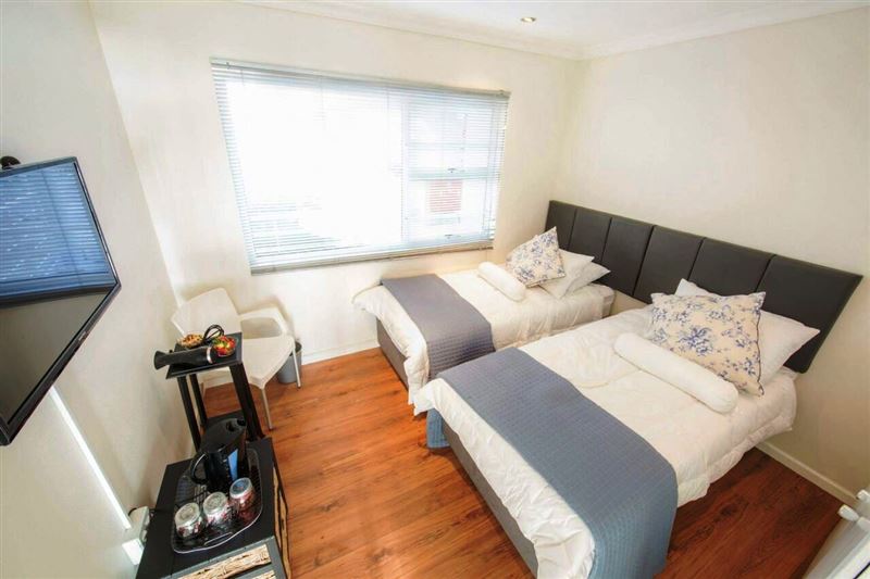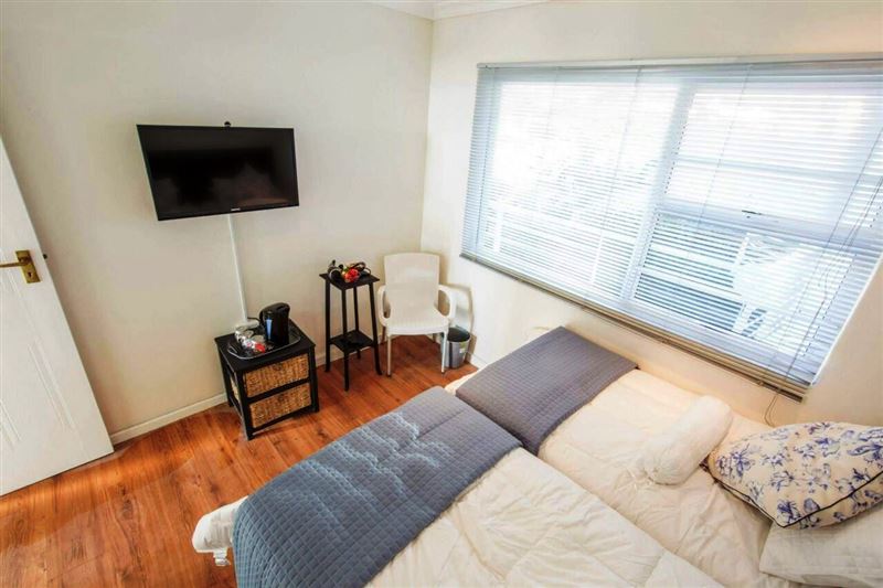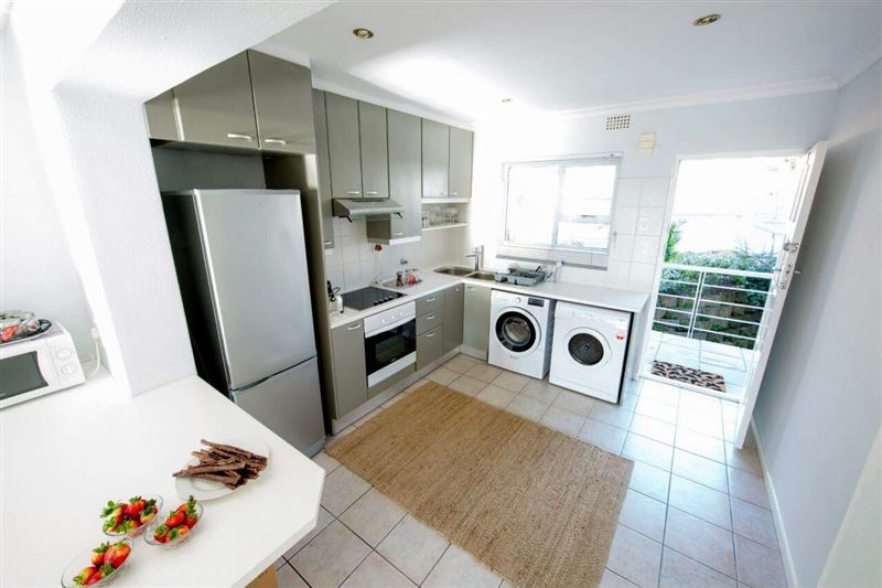 Central, self catering, 2 bedroom apartment in a secure complex offers Wi-Fi, a self catering kitchen with washer & dryer, living area with TV & dining area leading onto a balcony with stunning ocean & mountain views. Main bedroom leads onto the balcony offers a king sized bed, a TV, a safe, ample wardrobe space & an en suite bathroom which offers a shower. Second bedroom offers twin beds, a TV & ample wardrobe space. This bedroom has its own bathroom with a bath & shower facilities. There are 2 pools in the complex.
