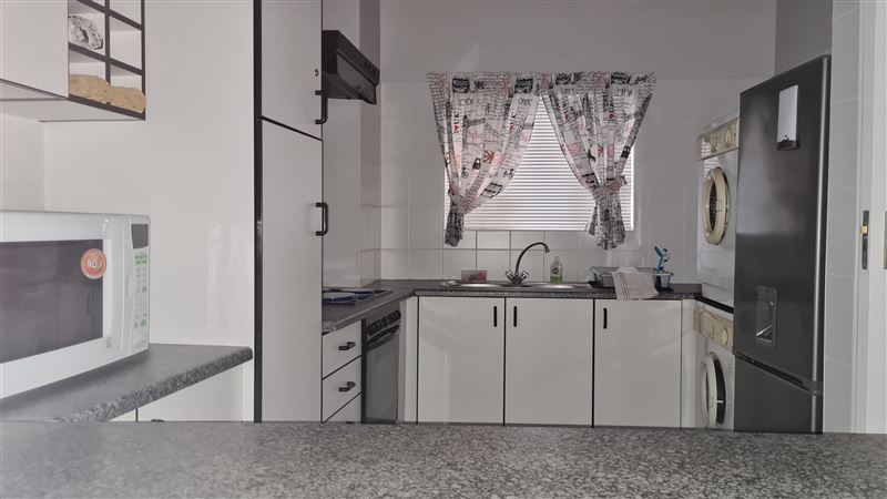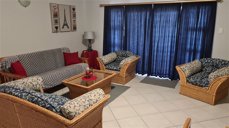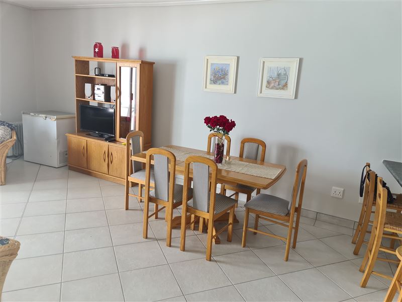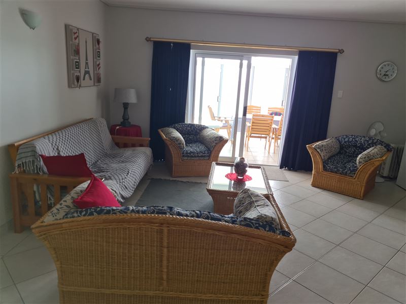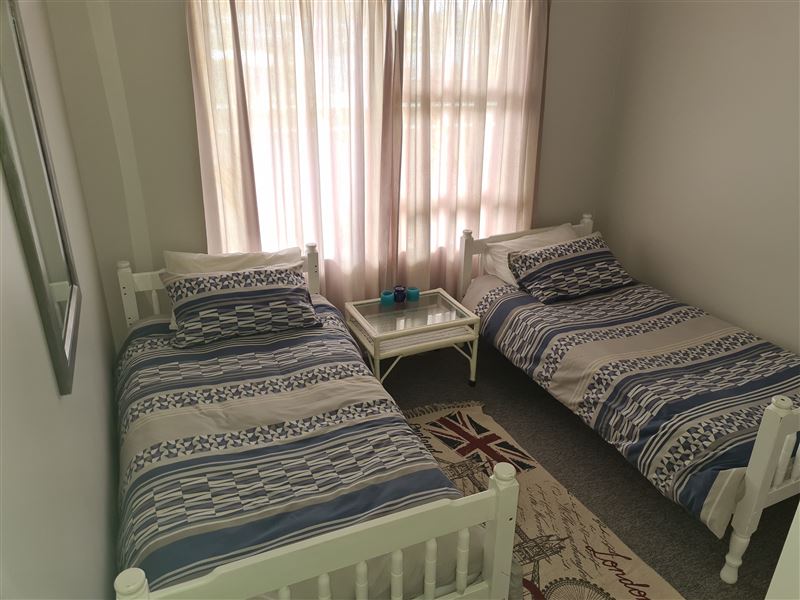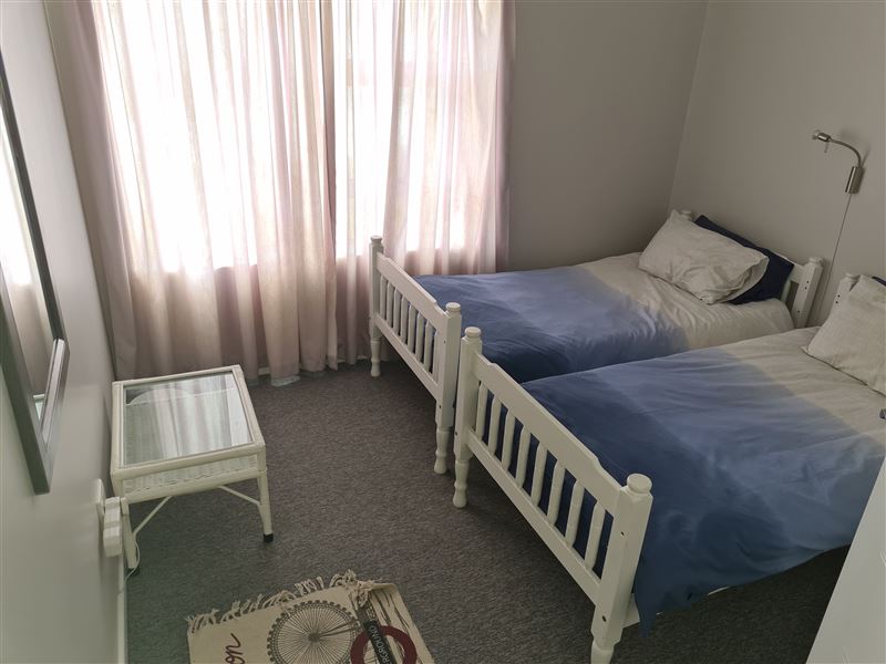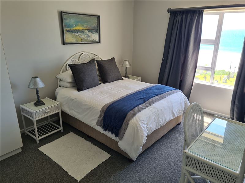 This is a three-bedroom flat sleeping up to six people and with 180-degree views over Mossel Bay. The apartment is on the second floor of the complex and two of the bedrooms face the ocean. There is a large enclosed balcony, with a gas barbecue plus three bedrooms, one double bed and two twin bedrooms. The main bedroom has a queen bed and its own bathroom with a bath, a basin and a toilet. There are two single beds in each of the other two bedrooms, and the second bathroom has a shower, a basin and a toilet. Bedding is supplied, but guests have to bring their own towels. There is a TV, DST, a